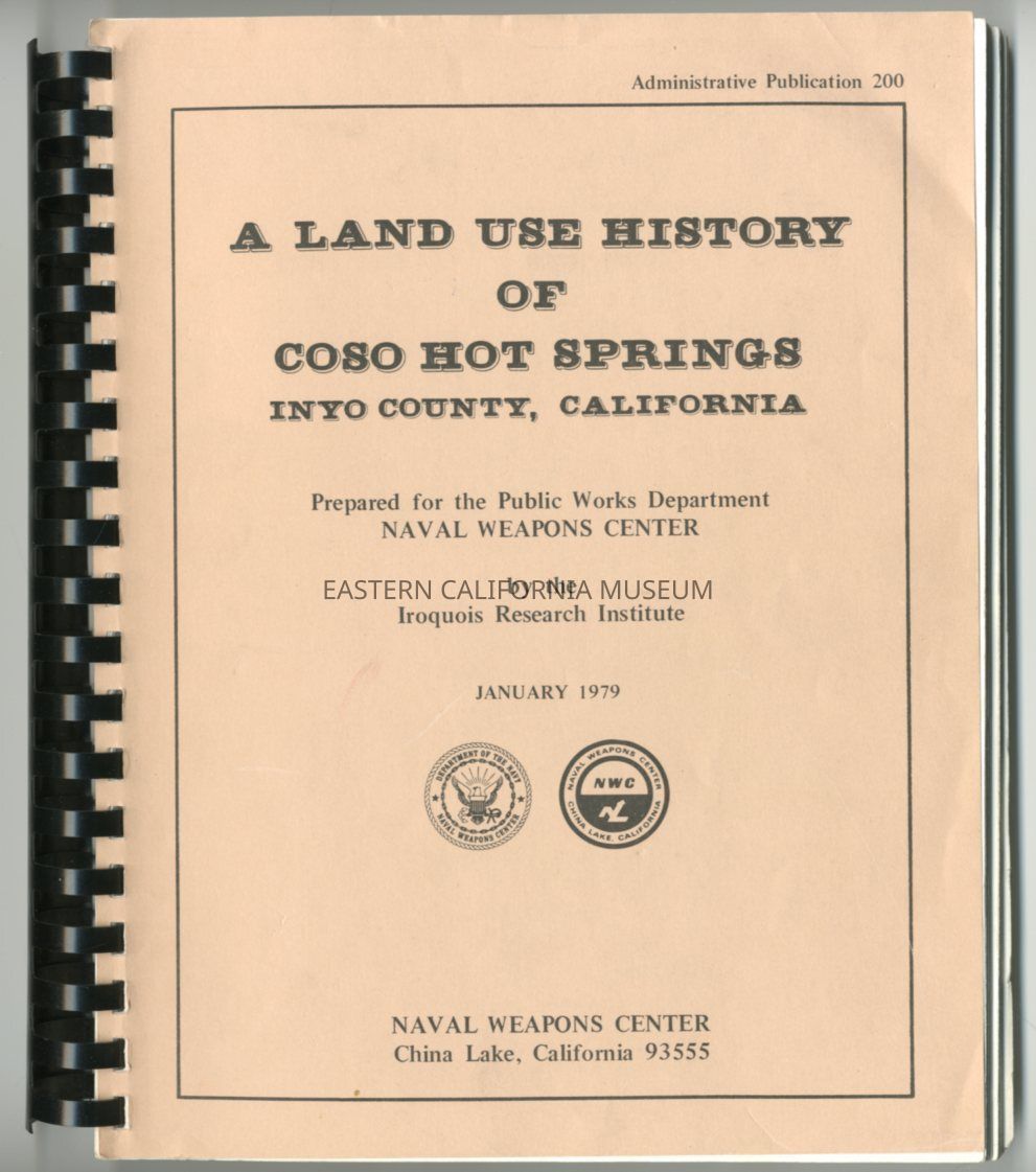 "A Land Use History of Coso Hot Springs, Inyo County, California" is spiral bound. It was prepared for the Public Works Department, Naval Weapons Center by the Iroquois Research Institute.Publication Details