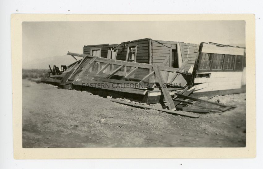 Photo of a house or structure with extensive damage. This is one of six photos of damage caused by a wind storm, likely in 1923.