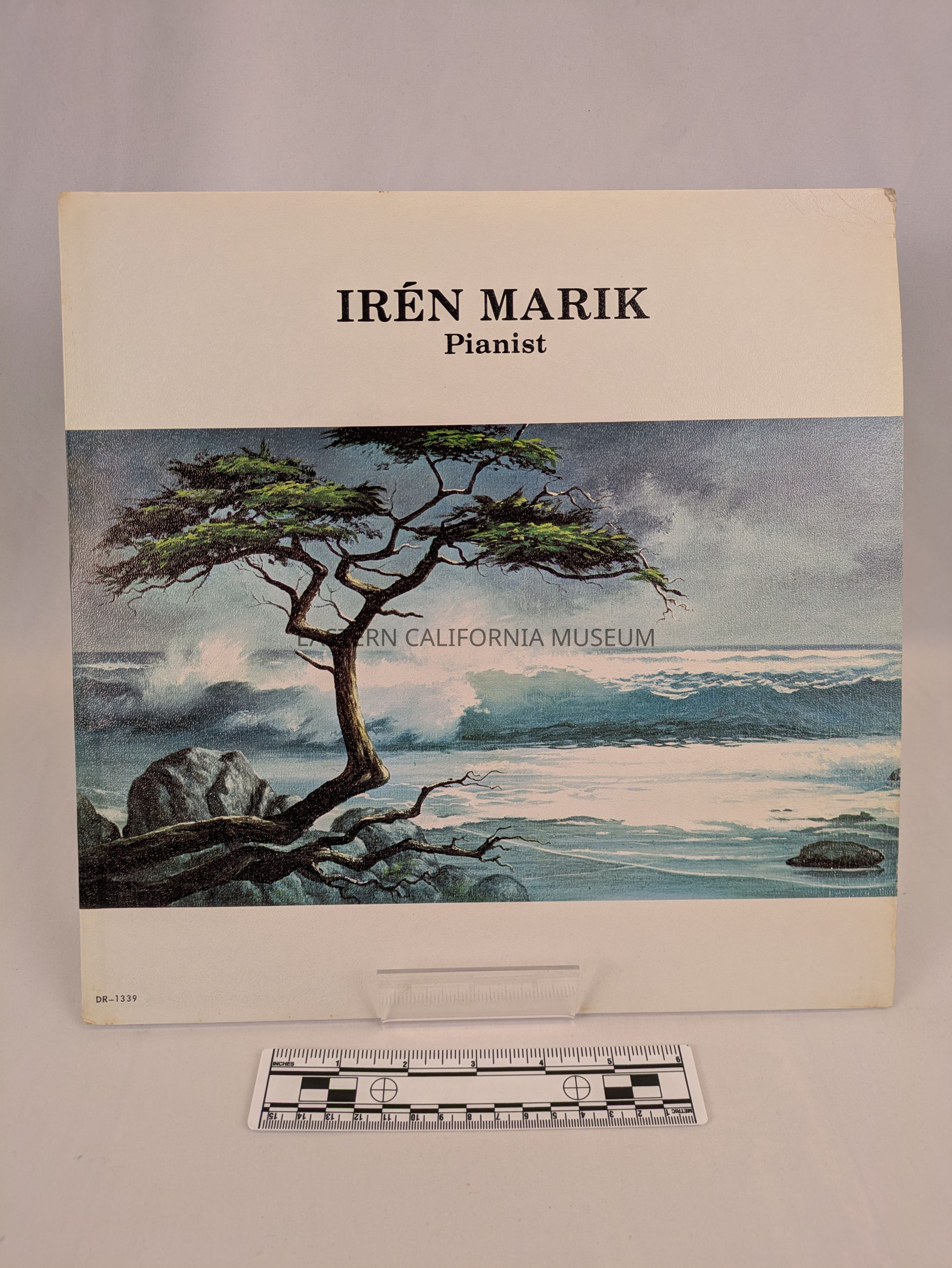 Phonograph record featuring Iren Marik, Pianist. Side one: Sonate in D Major Op. 28 Pastorale (Beethoven), and Reflets Dans L'eau (Debussy). Side two: From the Miroirs No. 2 Oiseaux Tristes (Ravel), and Ten Preludes Op. 28 (Chopin). DR-1339.Collection