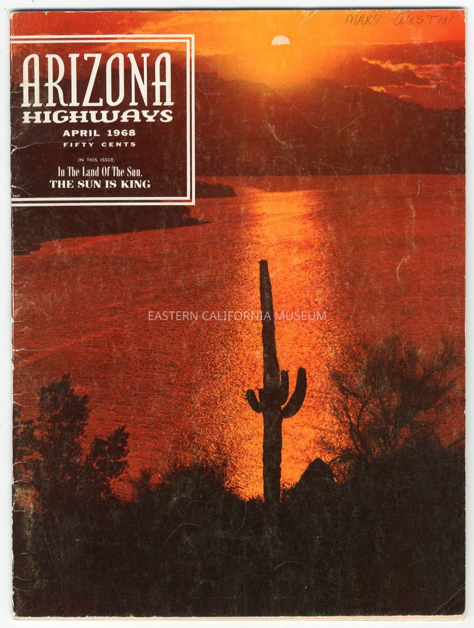 Arizona Highways, Vol. XLIV, No. 4, April 1968. Contains an article titled, "Mary Austin's Country," by Nancy Newhall with photographs by Ansel Adams.Publication Details