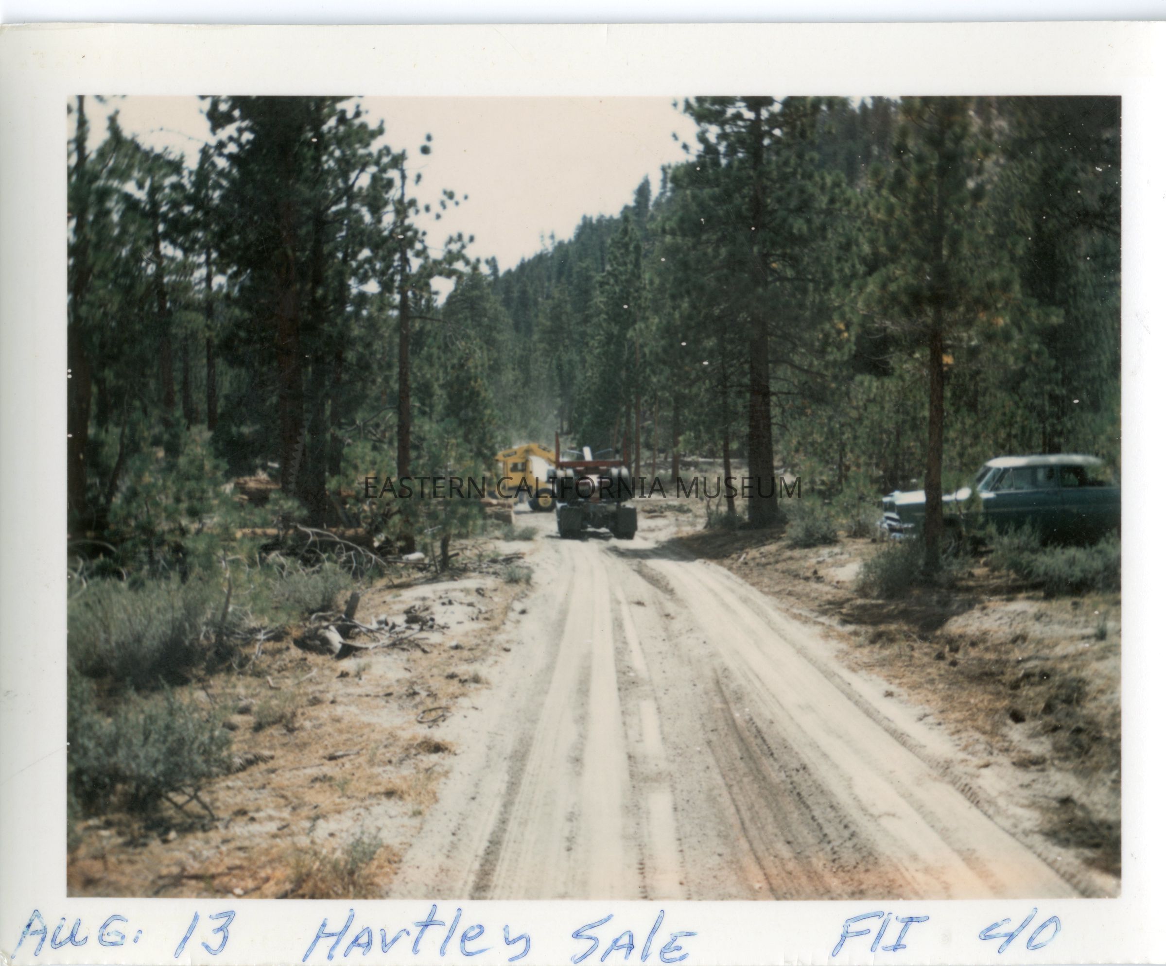 Color glossy print: logging road and equipment FOLDER: Logging