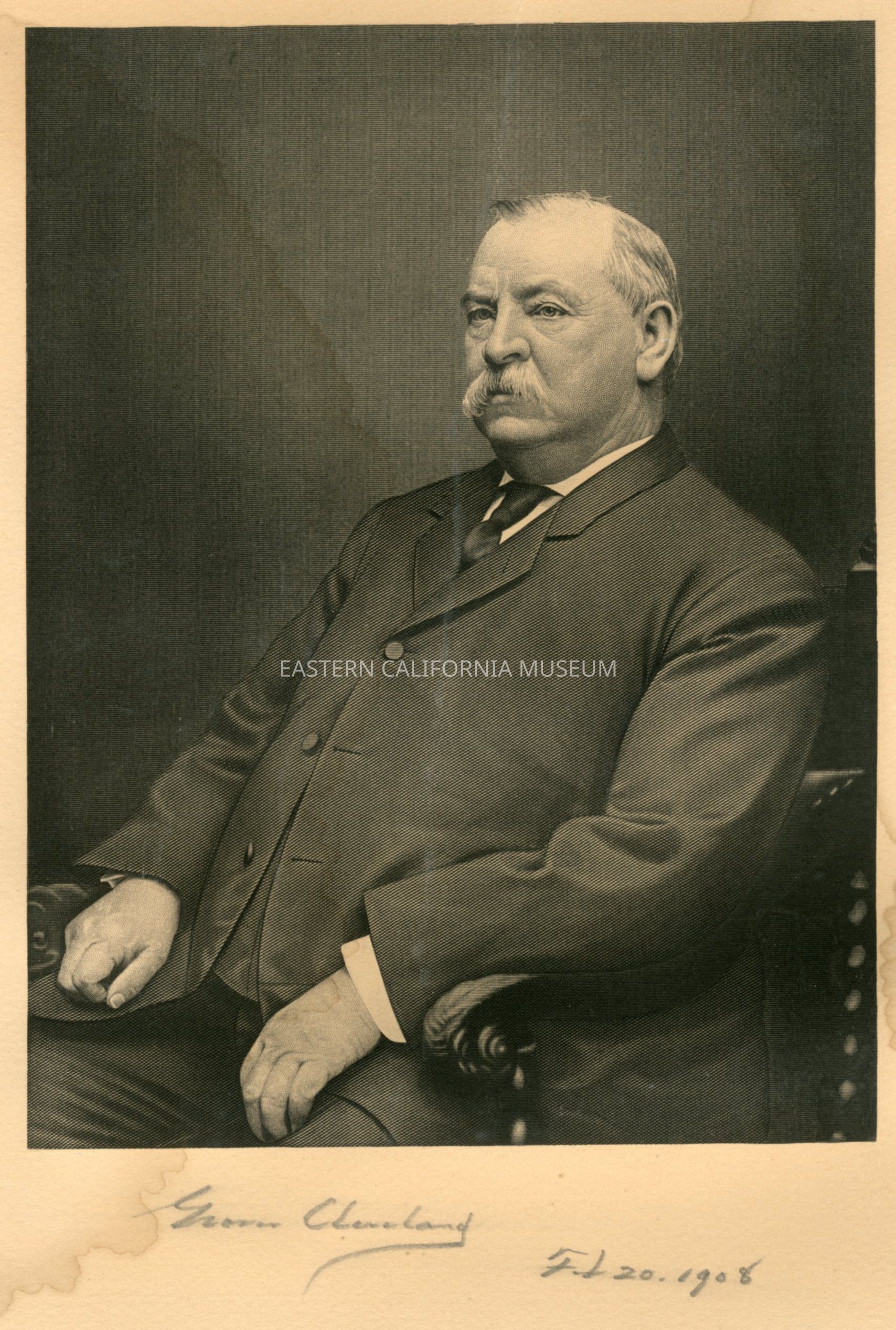 Print of Grover Cleveland seated. It is signed (autographed?) and dated Feb. 20, 1908 in pencil below the image.