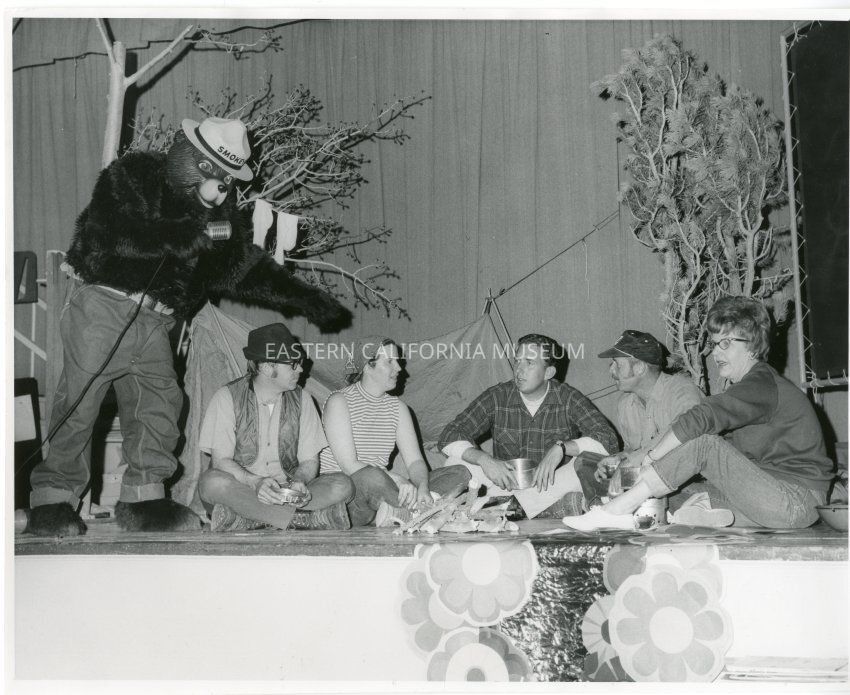 B&W glossy print: forest service skit performed at the Mammoth Visitor's Center auditorium
