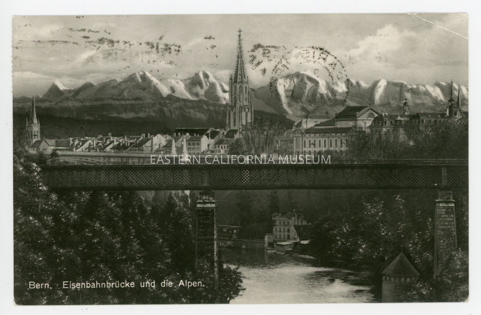 Bern. Eisenbahnbrucke und die Alpen.Entry/Object ID