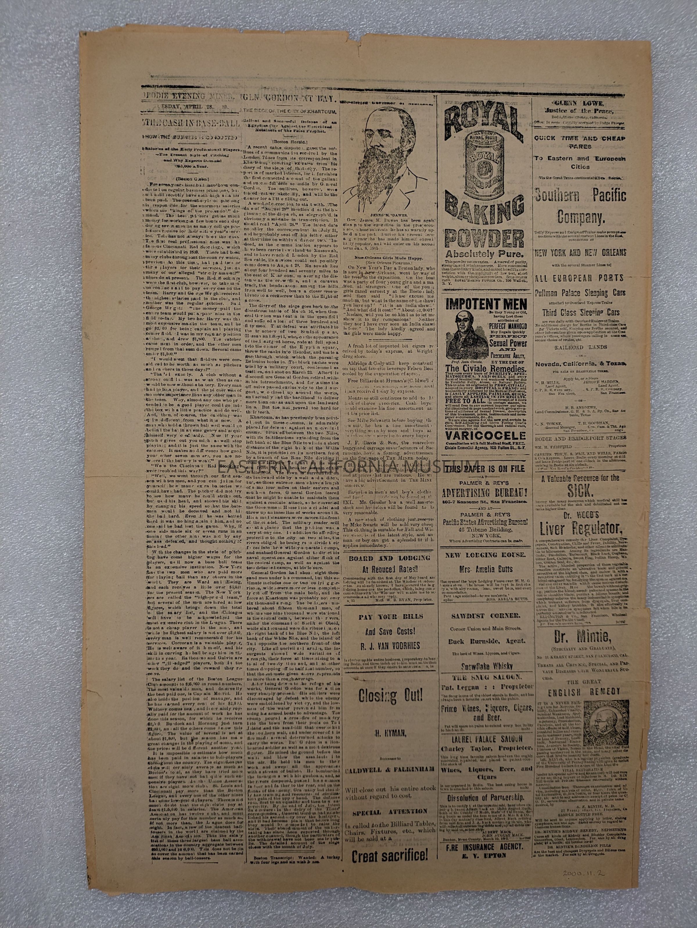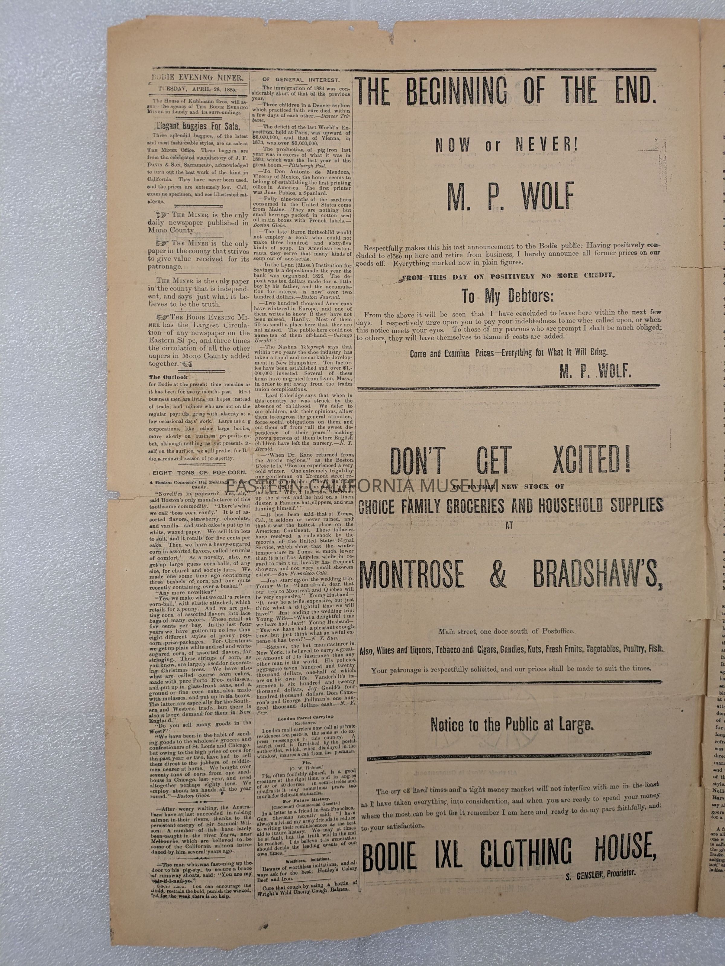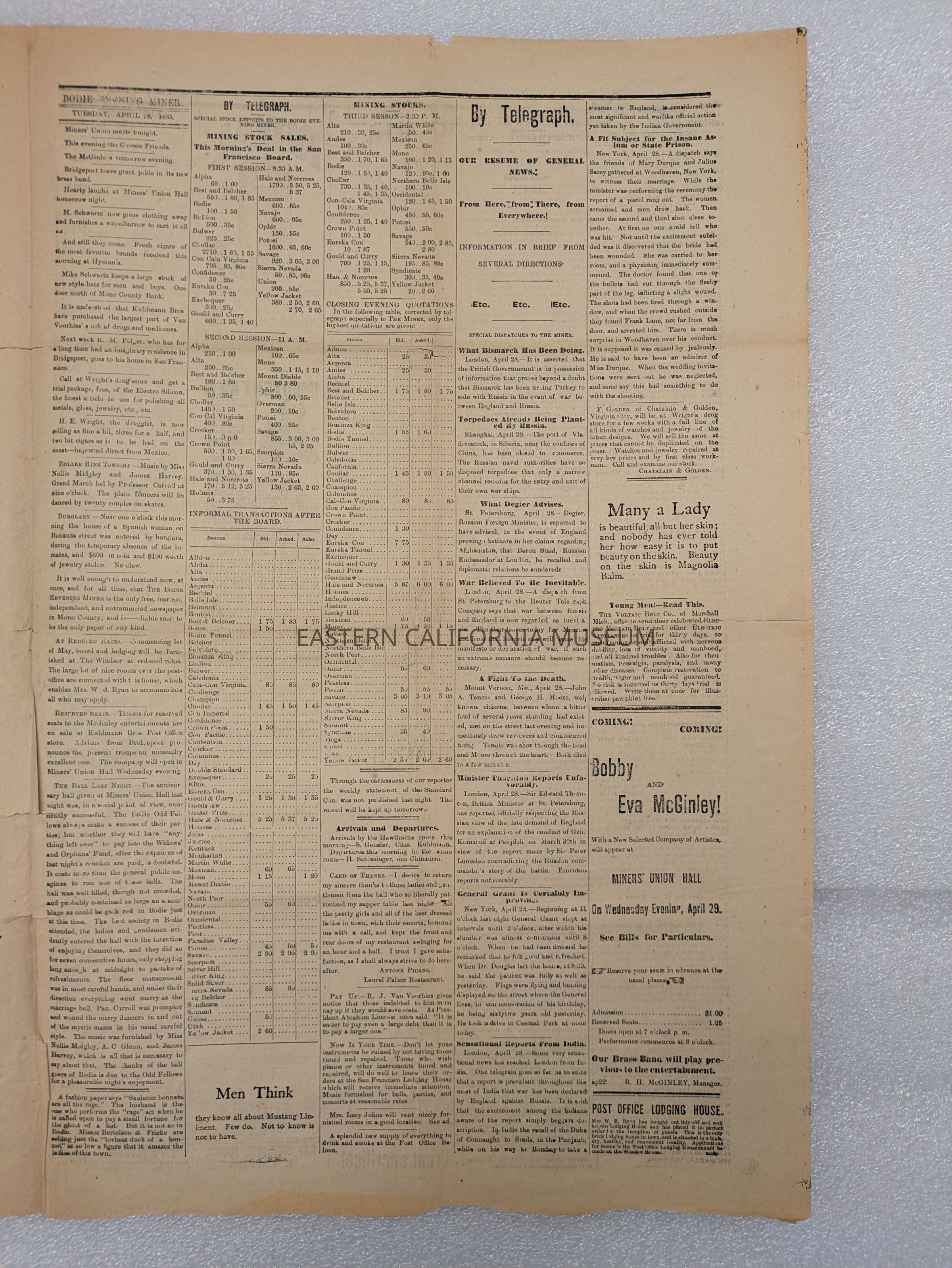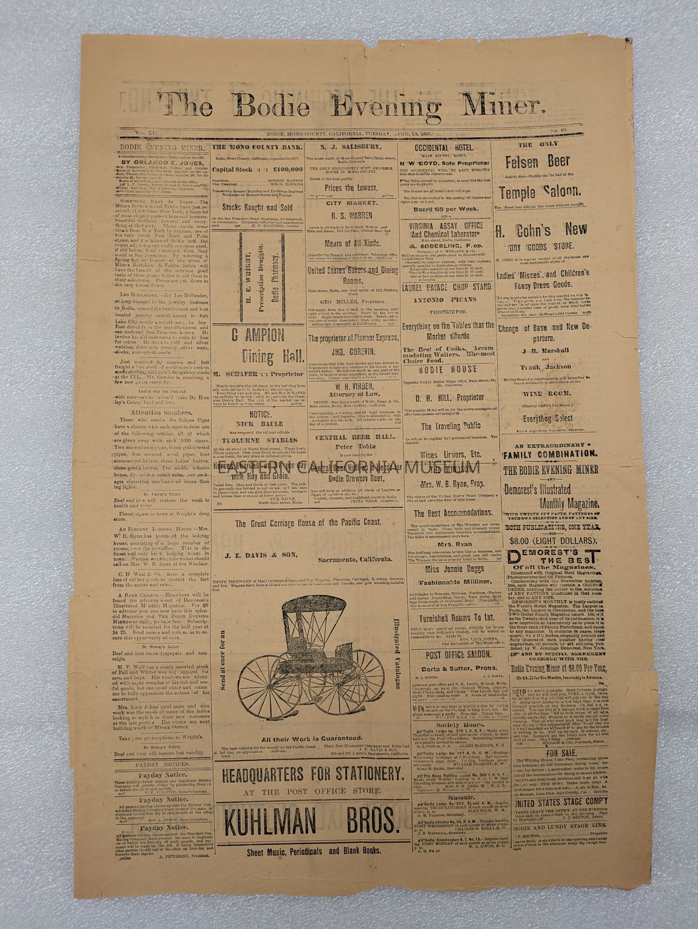 Newspaper: Bodie Evening Miner, Vol. XII, No. 60, April 28, 1885.Collection