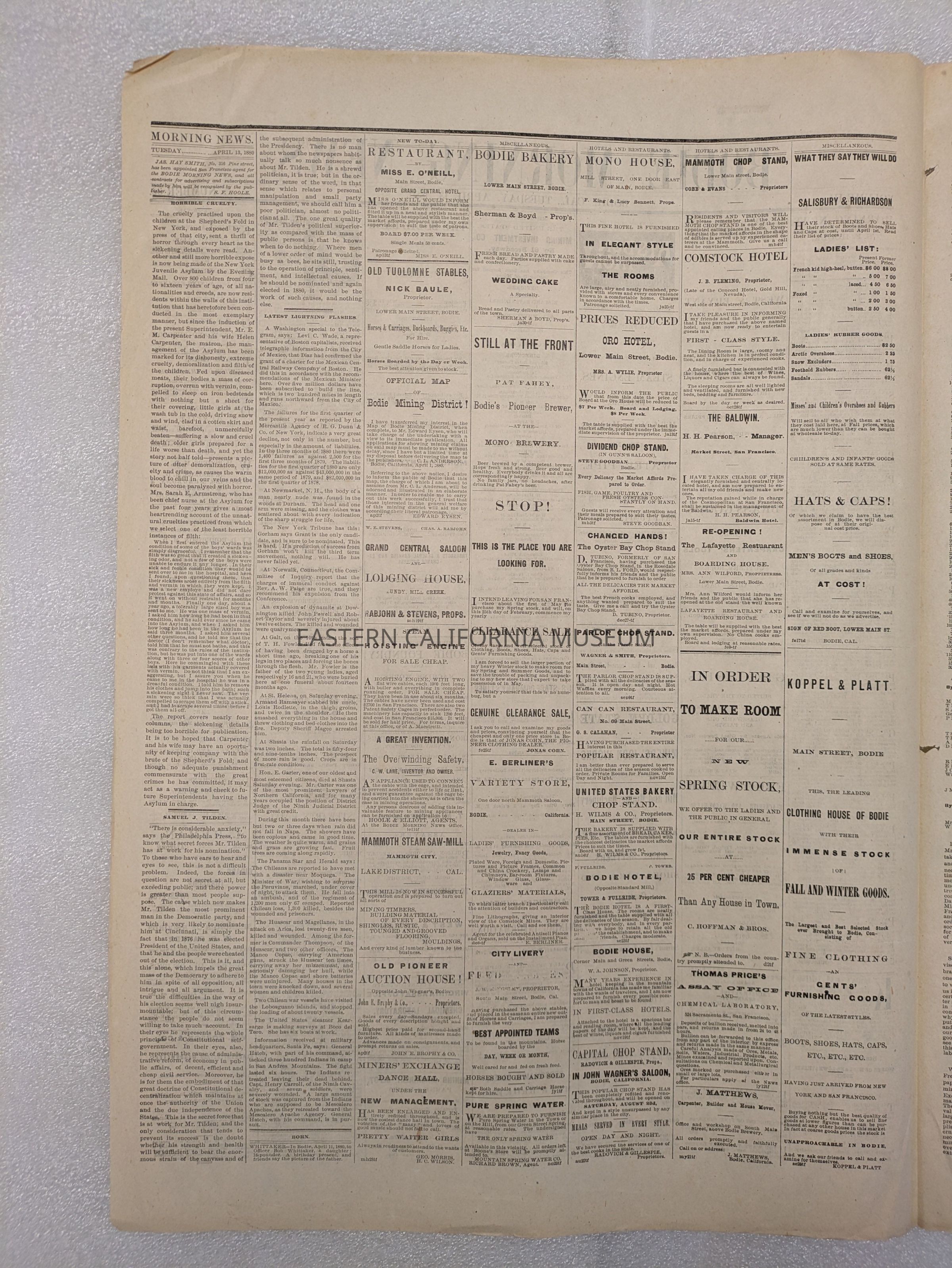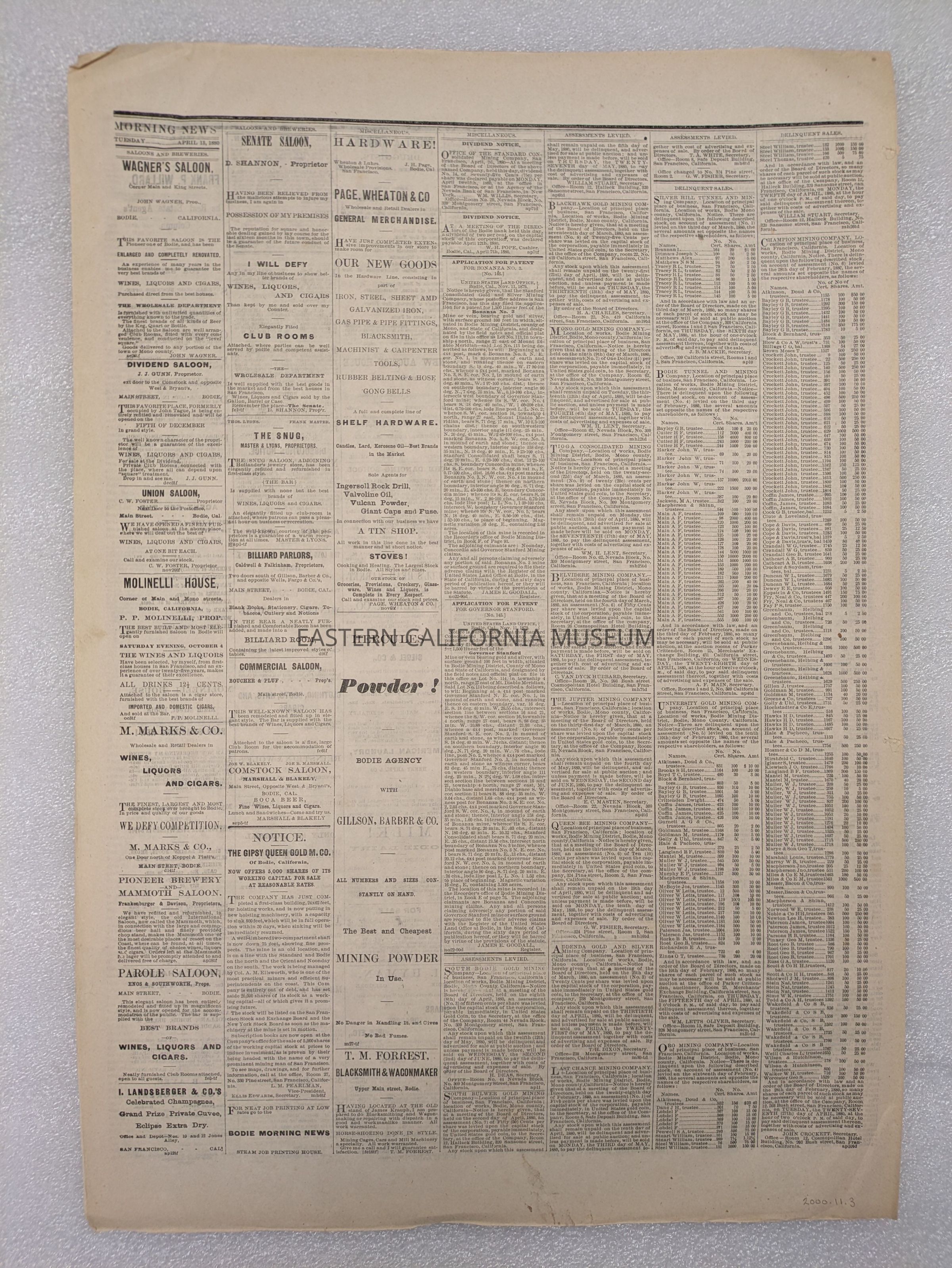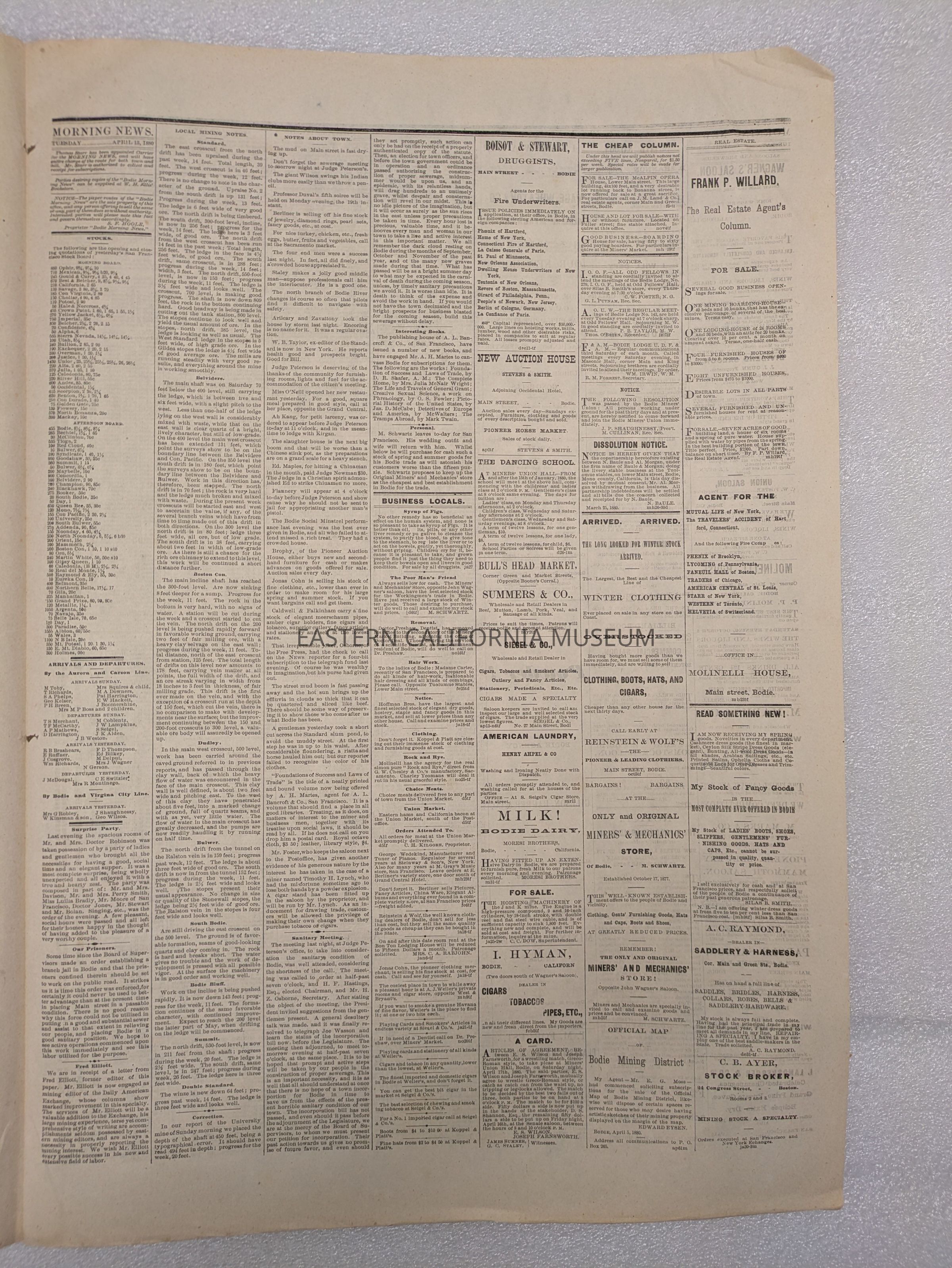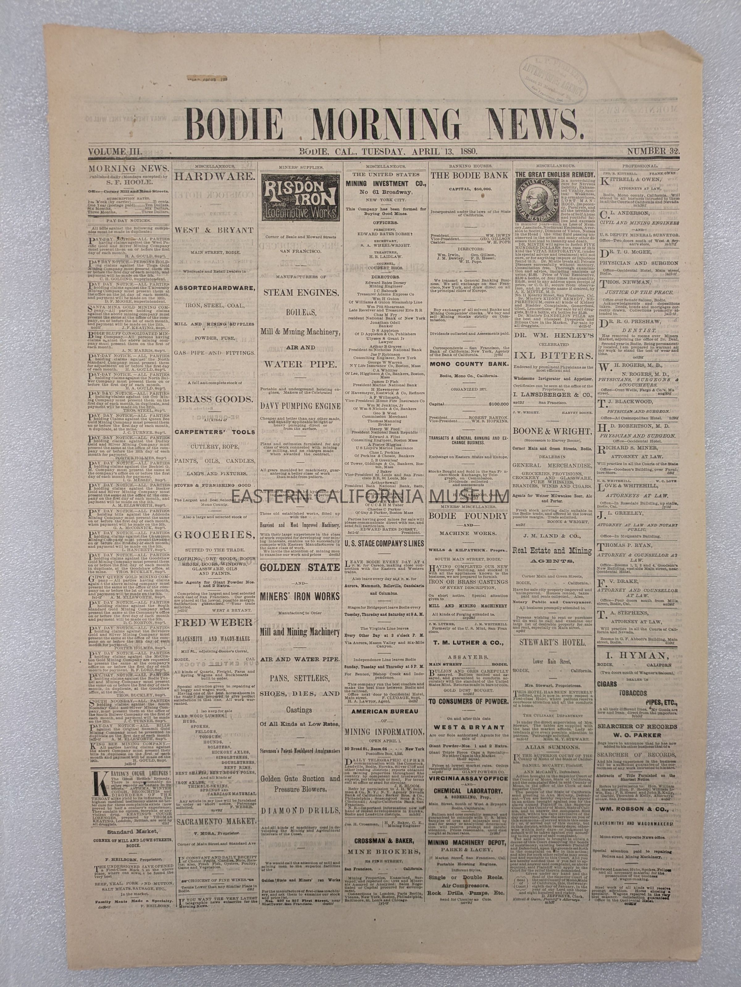 Newspaper: Bodie Morning News, Vol. III, No. 32, April 13, 1880.Collection
