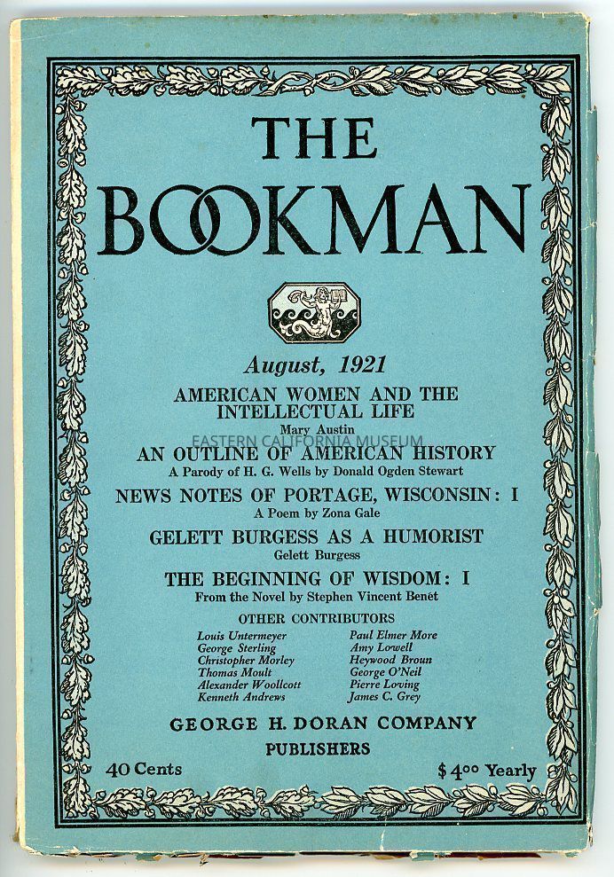 "Bookman, Vol. LIII, No. 6, August 1921" contains an article titled, "American Women and the Intellectual Life" by Mary Austin.Publication Details