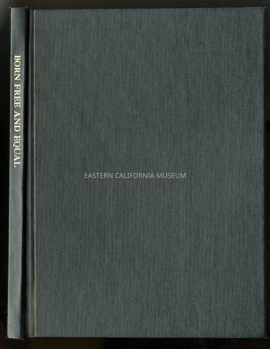 "Born Free and Equal: The Story of Loyal Japanese-Americans at Manzanar Relocation Center, Inyo County, California" has been rebound into a black hardcover binding. Donor's name inscribed inside.Collection
