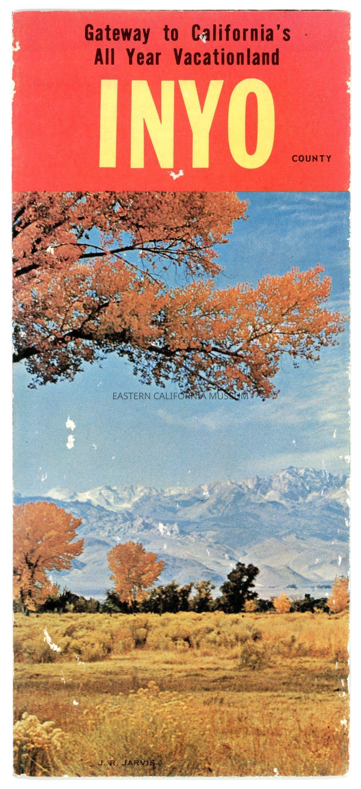 Trifold brochure with the headline, "Gateway to California's All Year Vacationland: Inyo County." It was published by Chalfant Press, possibly circa 1950s-1960s.Collection