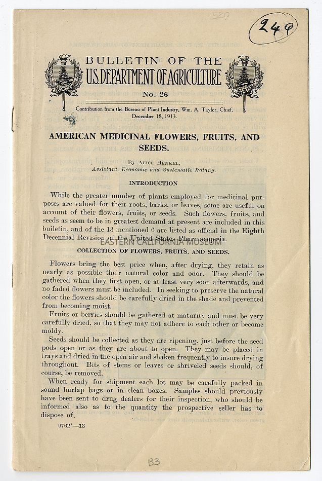 Bulletin of the U.S. Department of Agriculture, No. 26: American Medicinal Flowers, Fruits, and SeedsEntry/Object ID