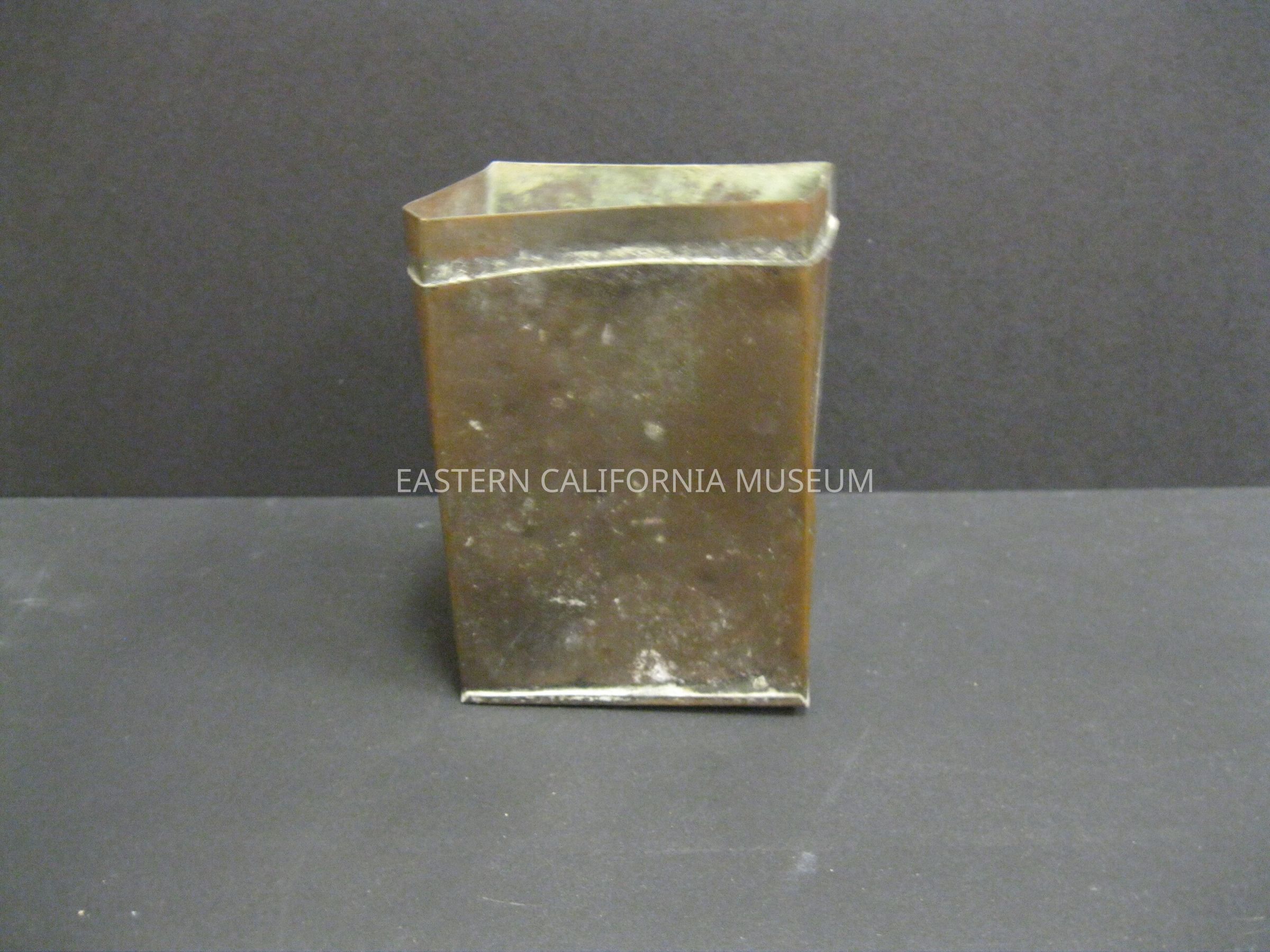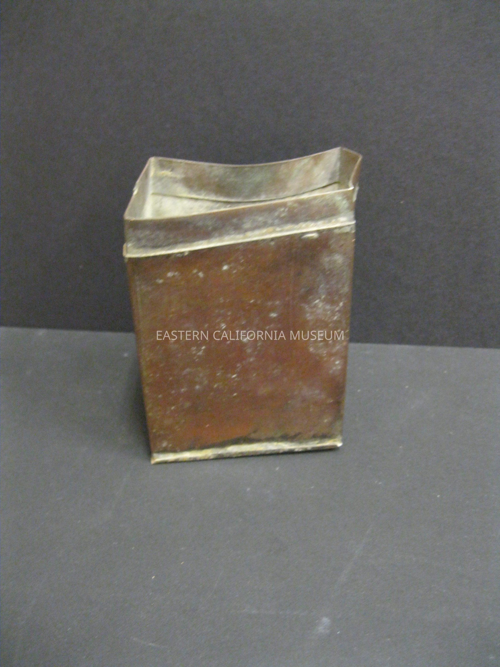 Crushed metal opium can. No stamp or other identifying features.