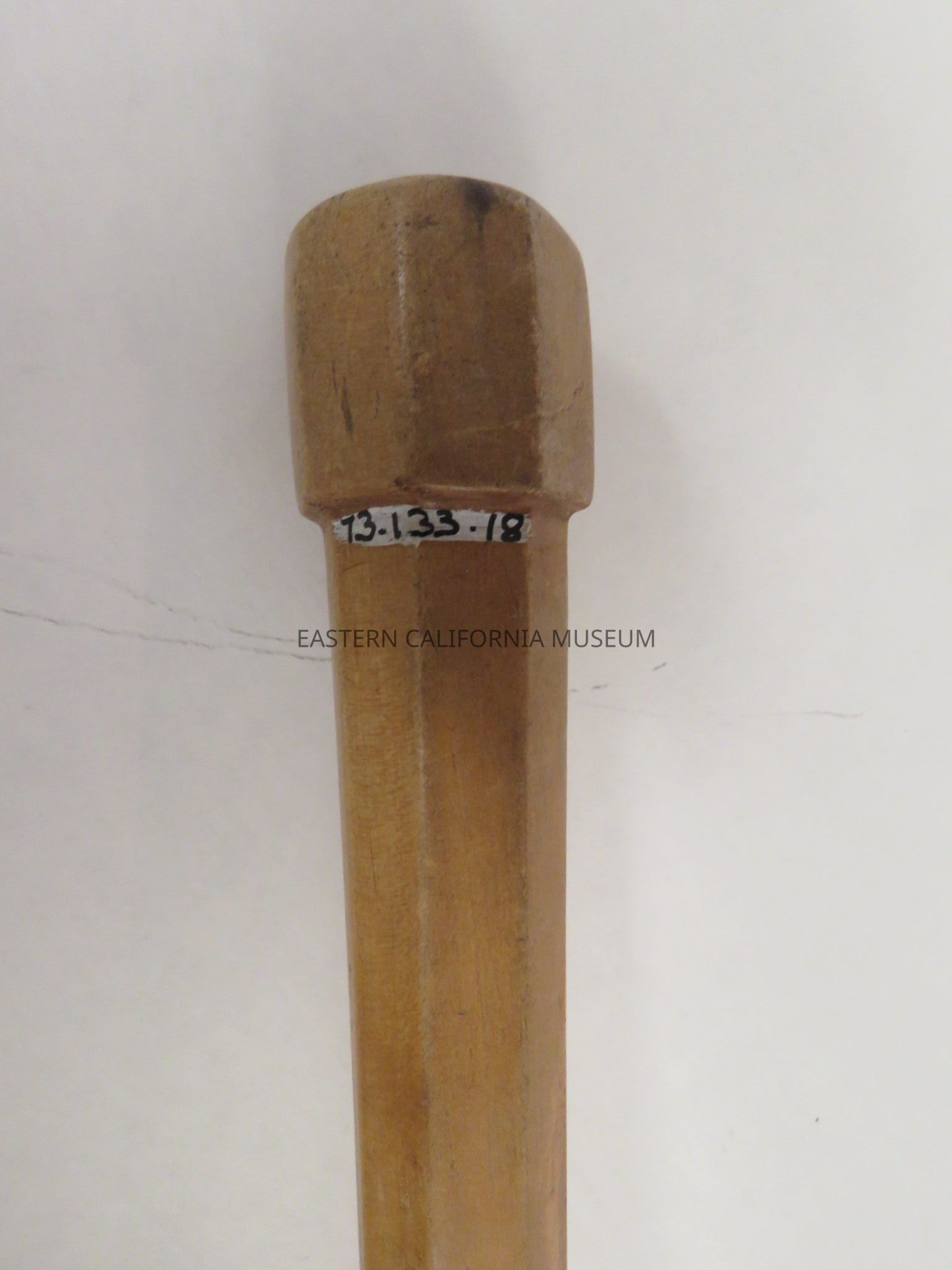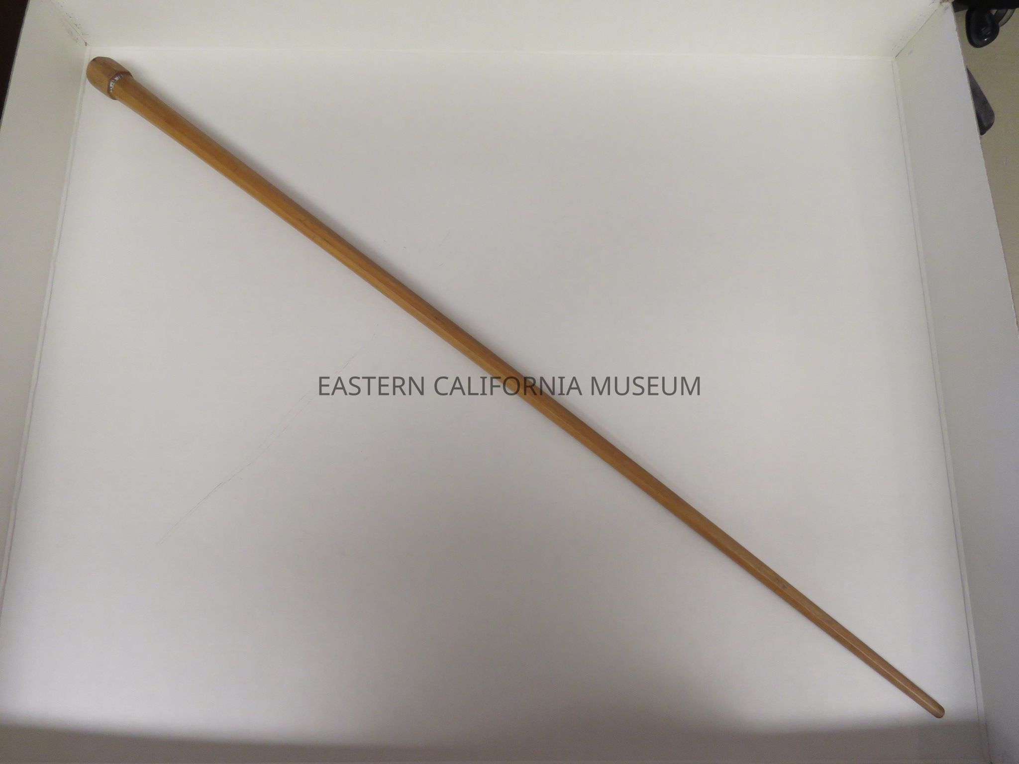 Octagon wooden cane with no handle, made at Manzanar War Relocation Center.