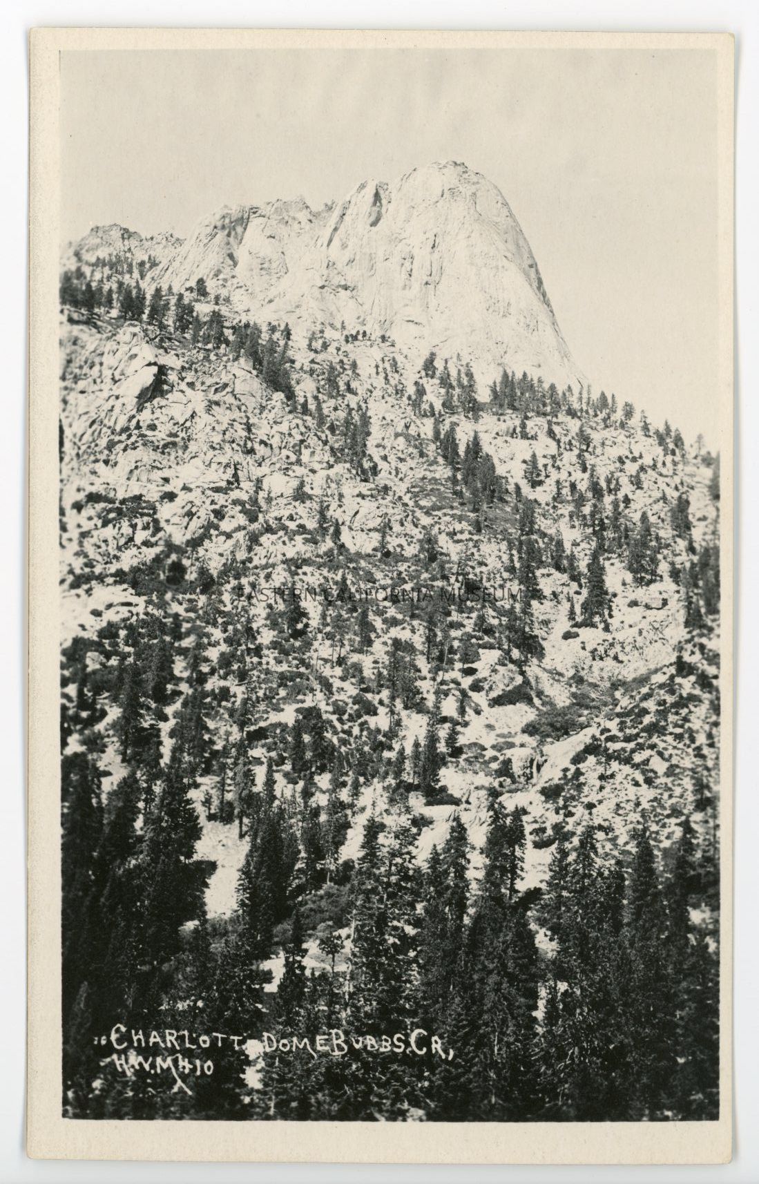 Photo postcard titled, 'Charlott [Charlotte] Dome, Bubbs Cr. [Creek]" taken by photographer H. W. Mendenhall and given his ID #410.Photograph Details