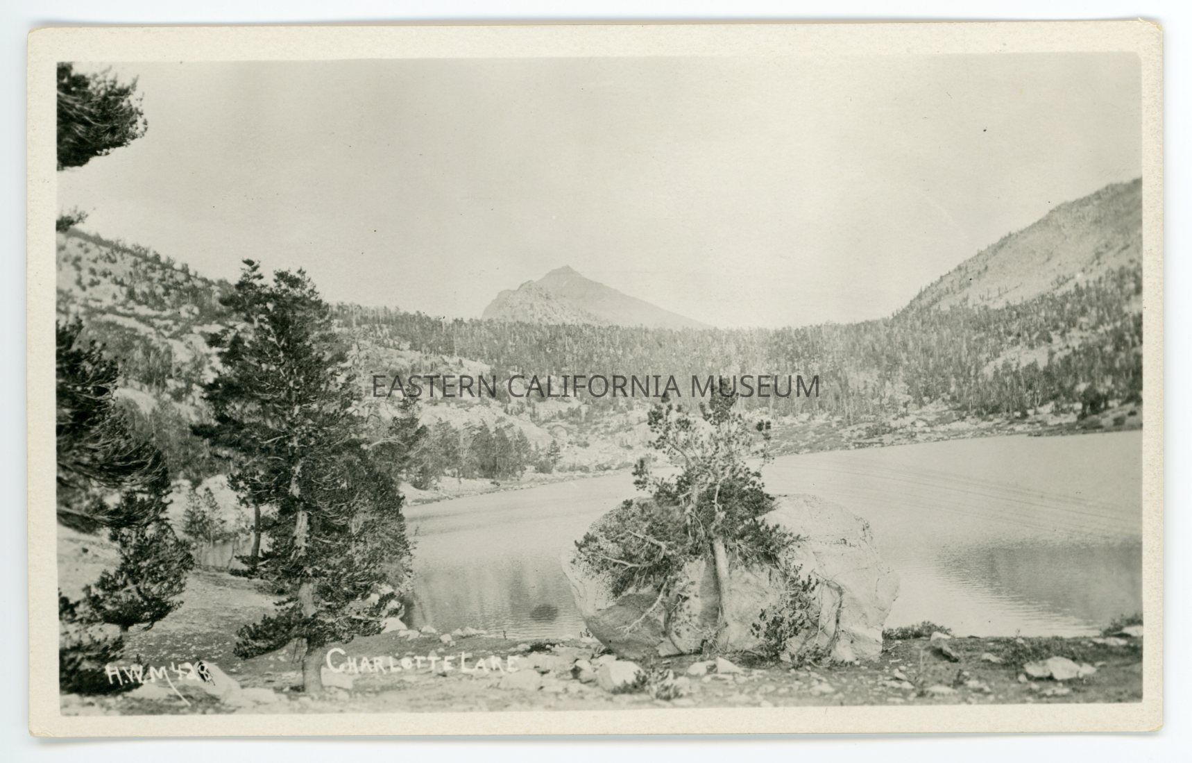 Photo postcard titled, "Charlotte Lake" taken by photographer H. W. Mendenhall and given his ID #428.Photograph Details