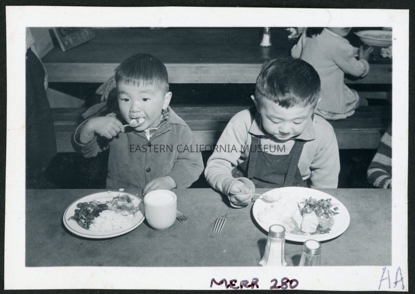 Title from eMuseum: "Children at Mess, Manzanar Relocation Center, California"