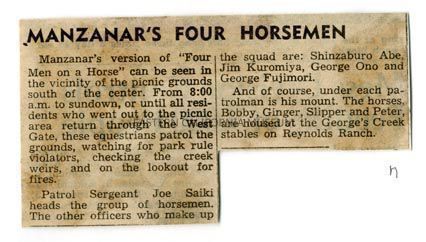 Newspaper clipping with the headline, "Manzanar's Four Horsemen."