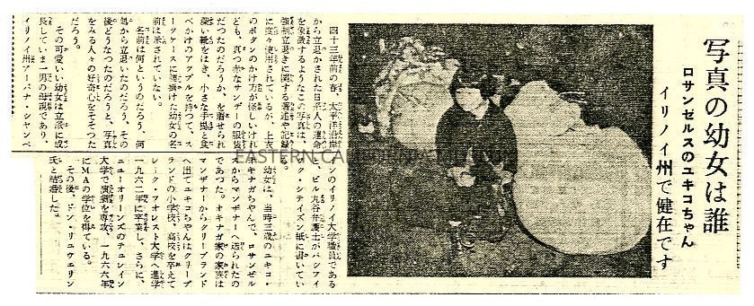 Photocopy of a newspaper clipping in Japanese that features a famous photo of Yukiko Okinago (1994.80.77b).