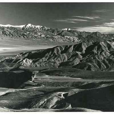1968.45.3--Mounted photograph titled, "Panamint Valley and the Panamint Range as seen in wintertime."
