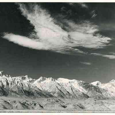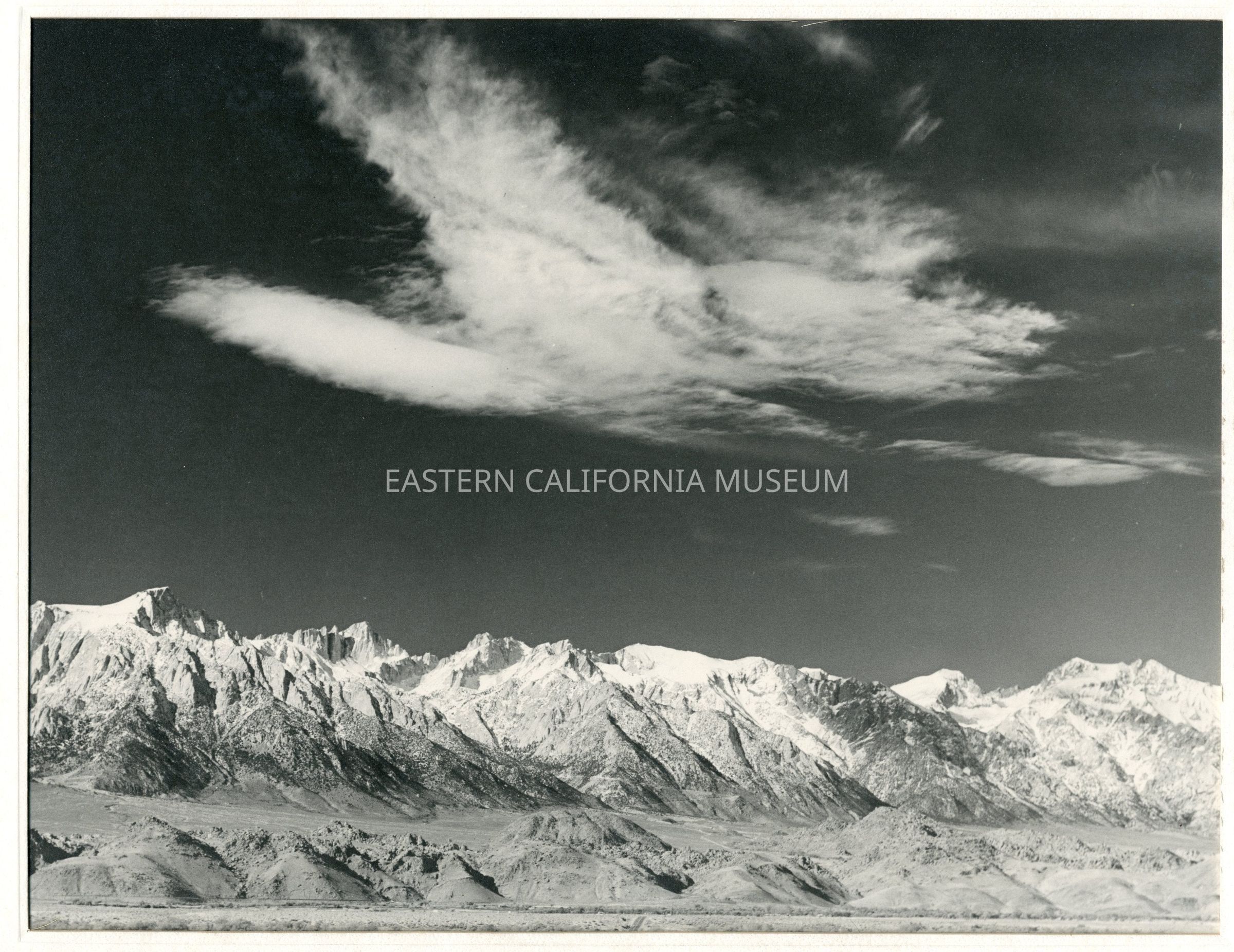 1968.45.4--Mounted photograph titled, "An unusual cloud formation above the Sierras where Mt. Whitney rises 14,495 feet above the sea."Collection
