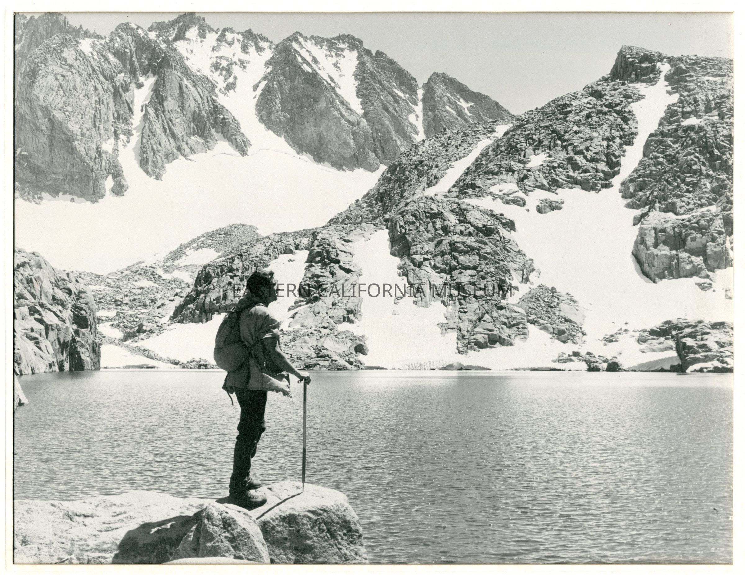 1968.45.1--Mounted photograph titled, "A hiker pauses to catch his breath in the rarified [air] at 11,500 feet."