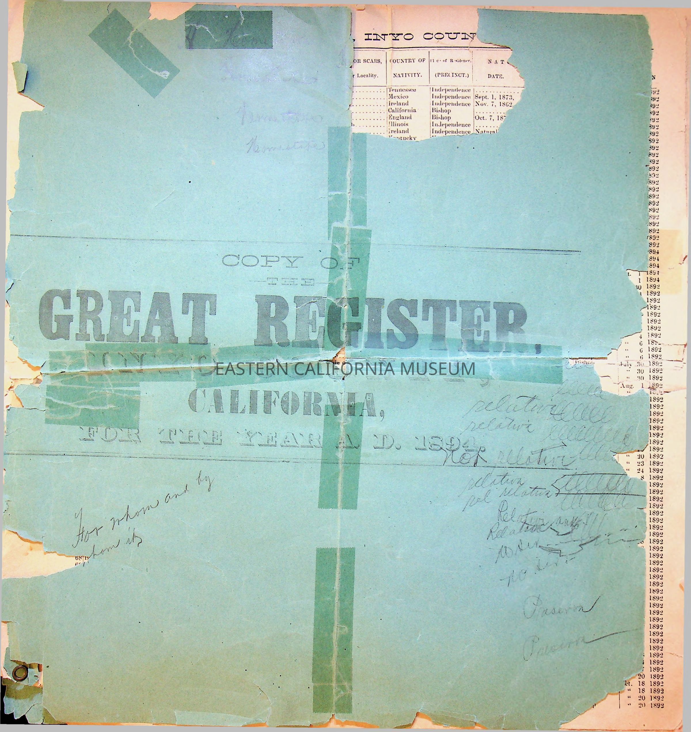 Copy of the Great Register, Inyo County, California, 1894.