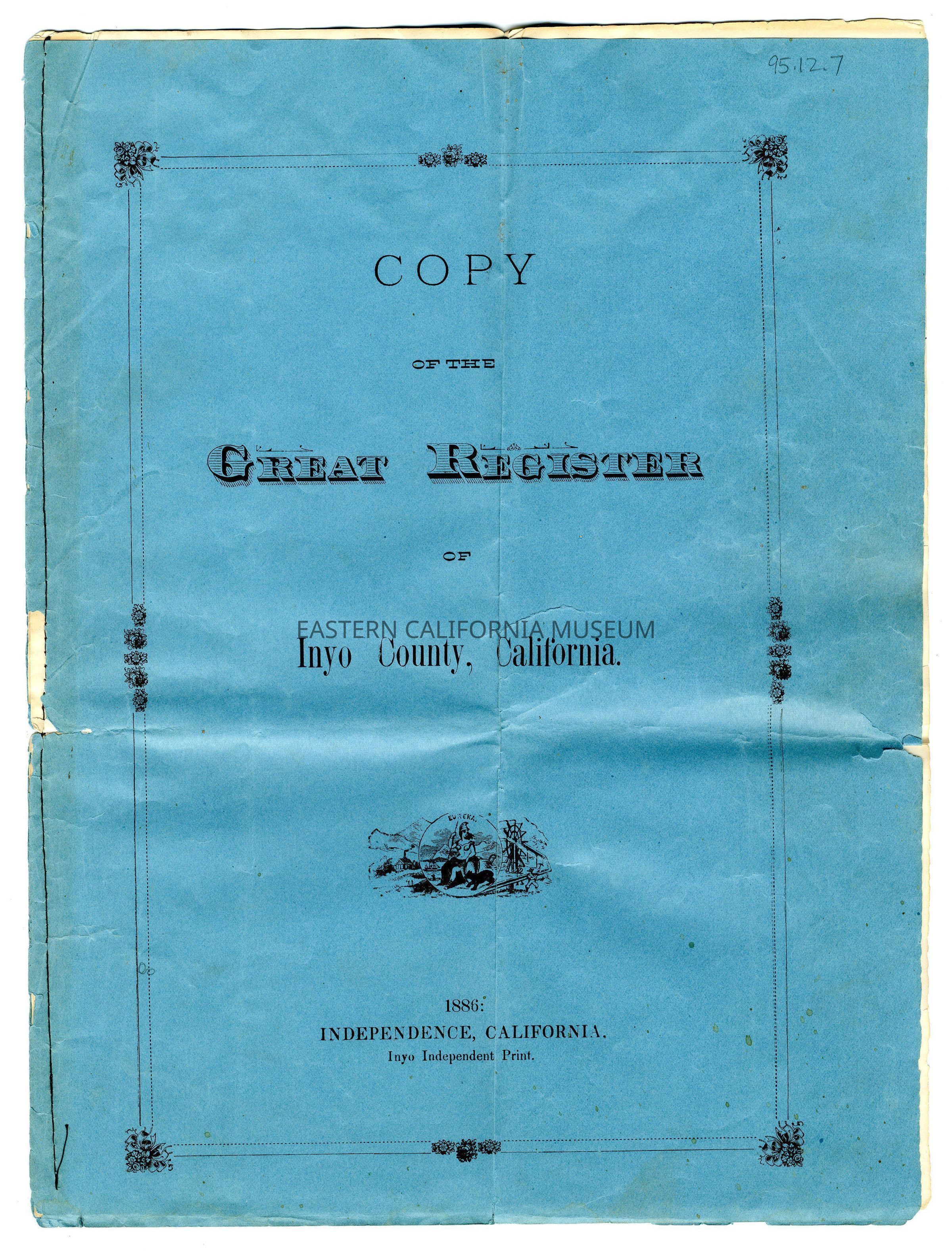 Copy of the Great Register of Inyo County, California, 1886.Collection