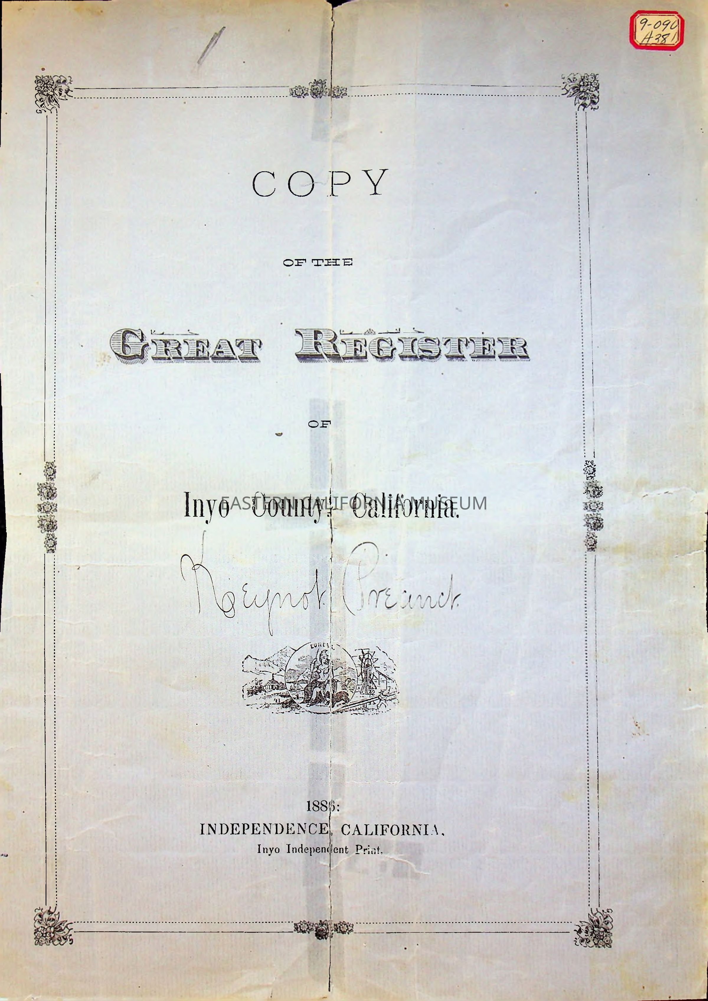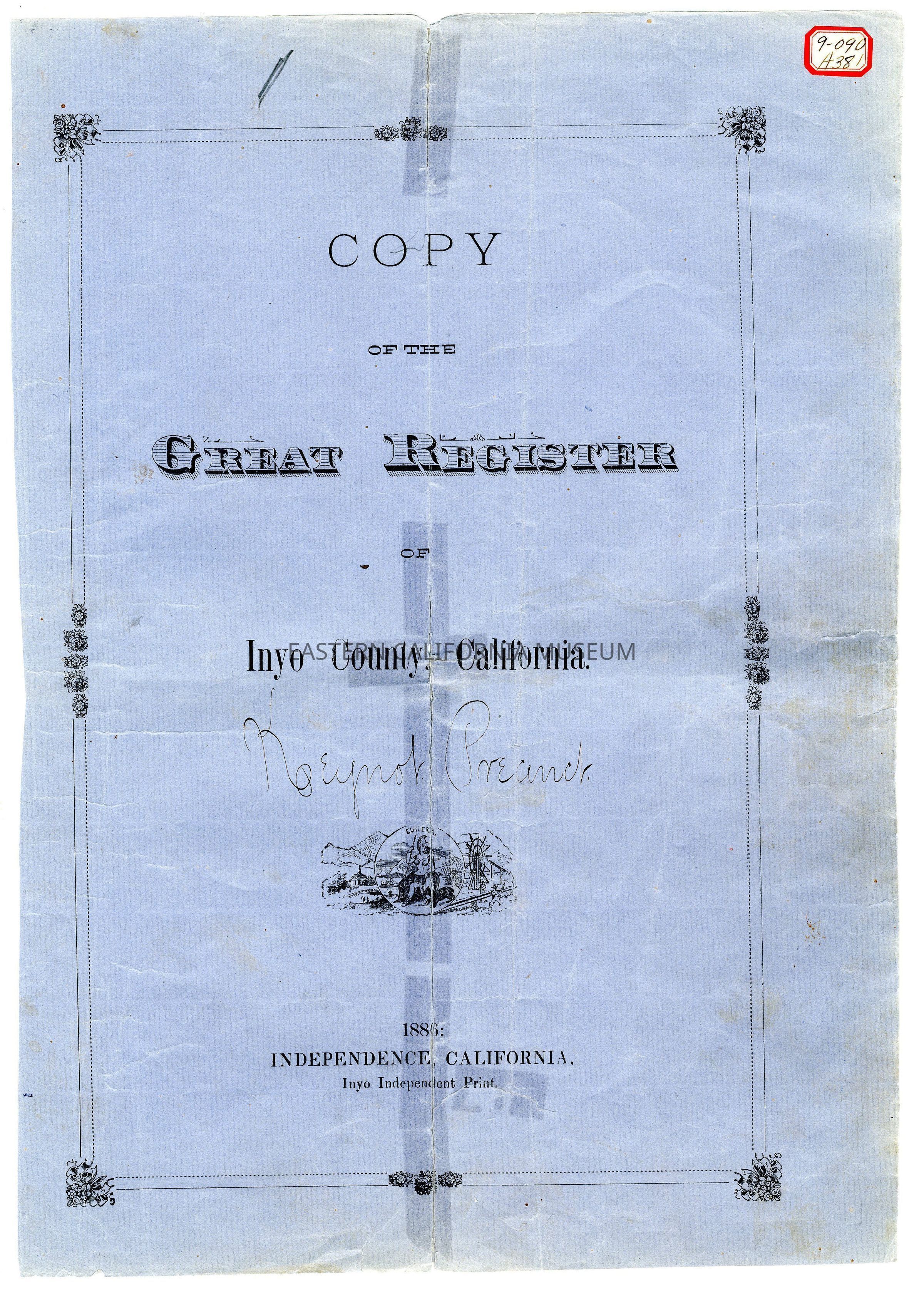 Copy of the Great Register of Inyo County, California, 1886Entry/Object ID
