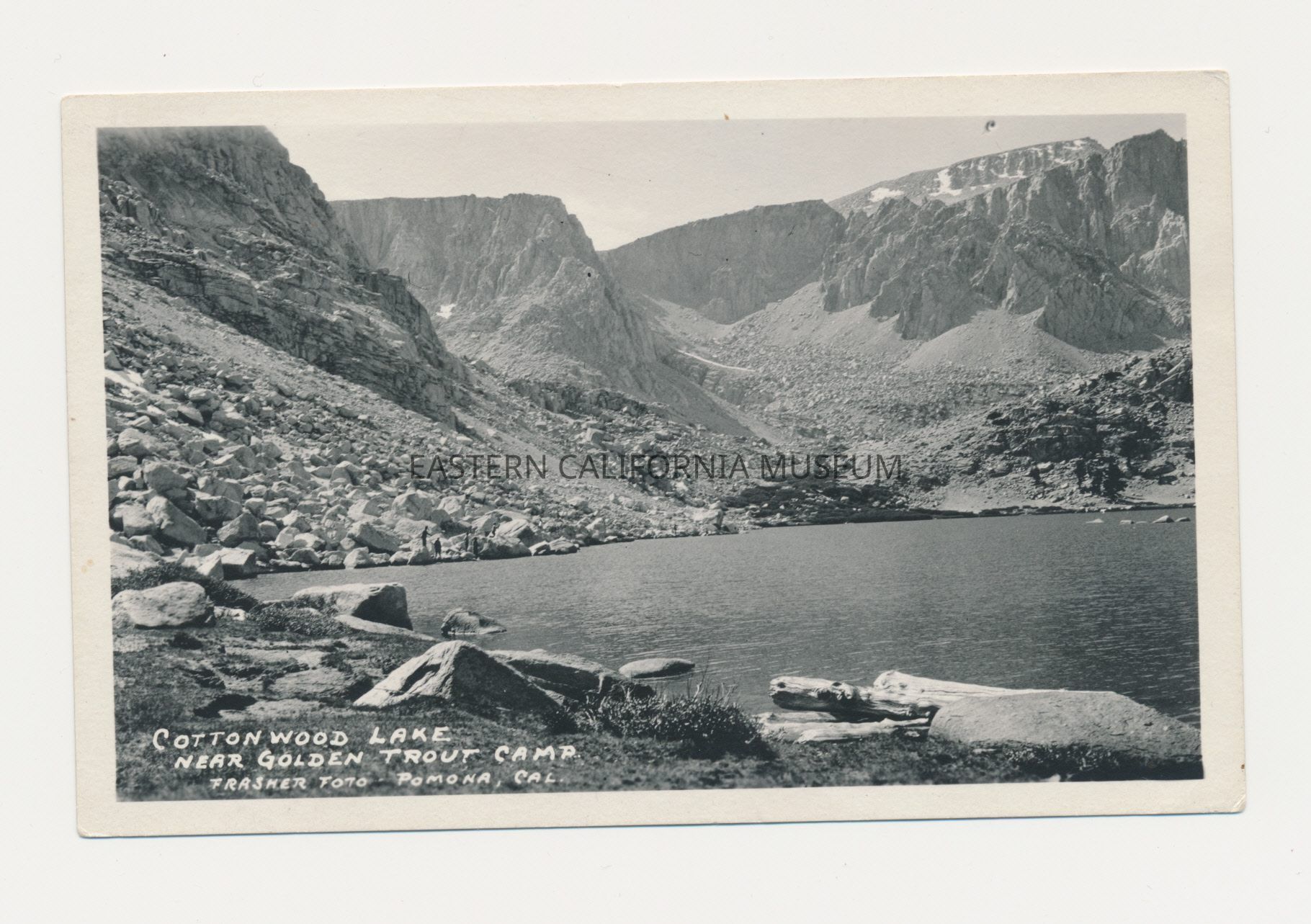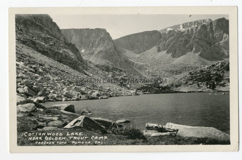 Photo postcard titled, "Cottonwood Lake Near Golden Trout Camp" that was taken by photographer Burton Frasher of Pomona.Collection