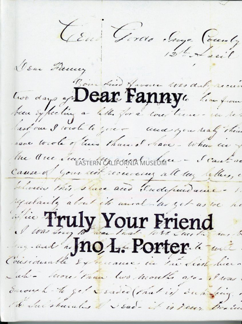 Dear Fanny, Truly Your Friend, Jno L. Porter