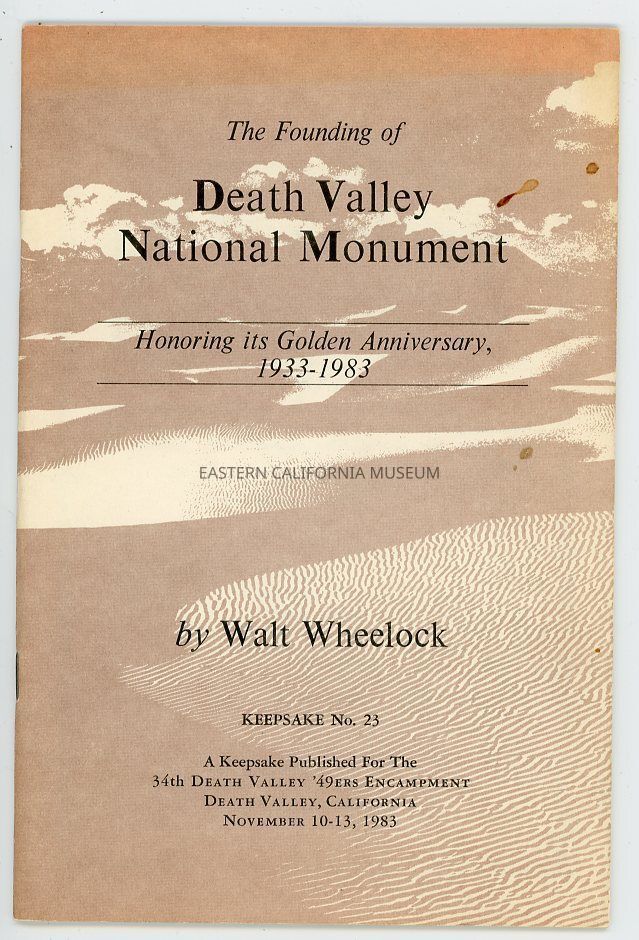 "Death Valley '49ers, Keepsake No. 23: The Founding of Death Valley National Monument" has some stains on cover.Publication Details