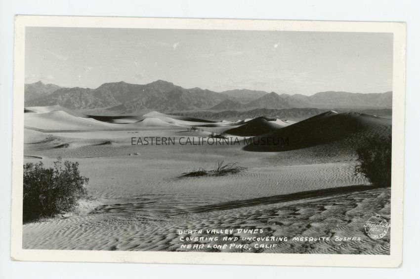 Photo postcard of sand dunes in Death Valley.