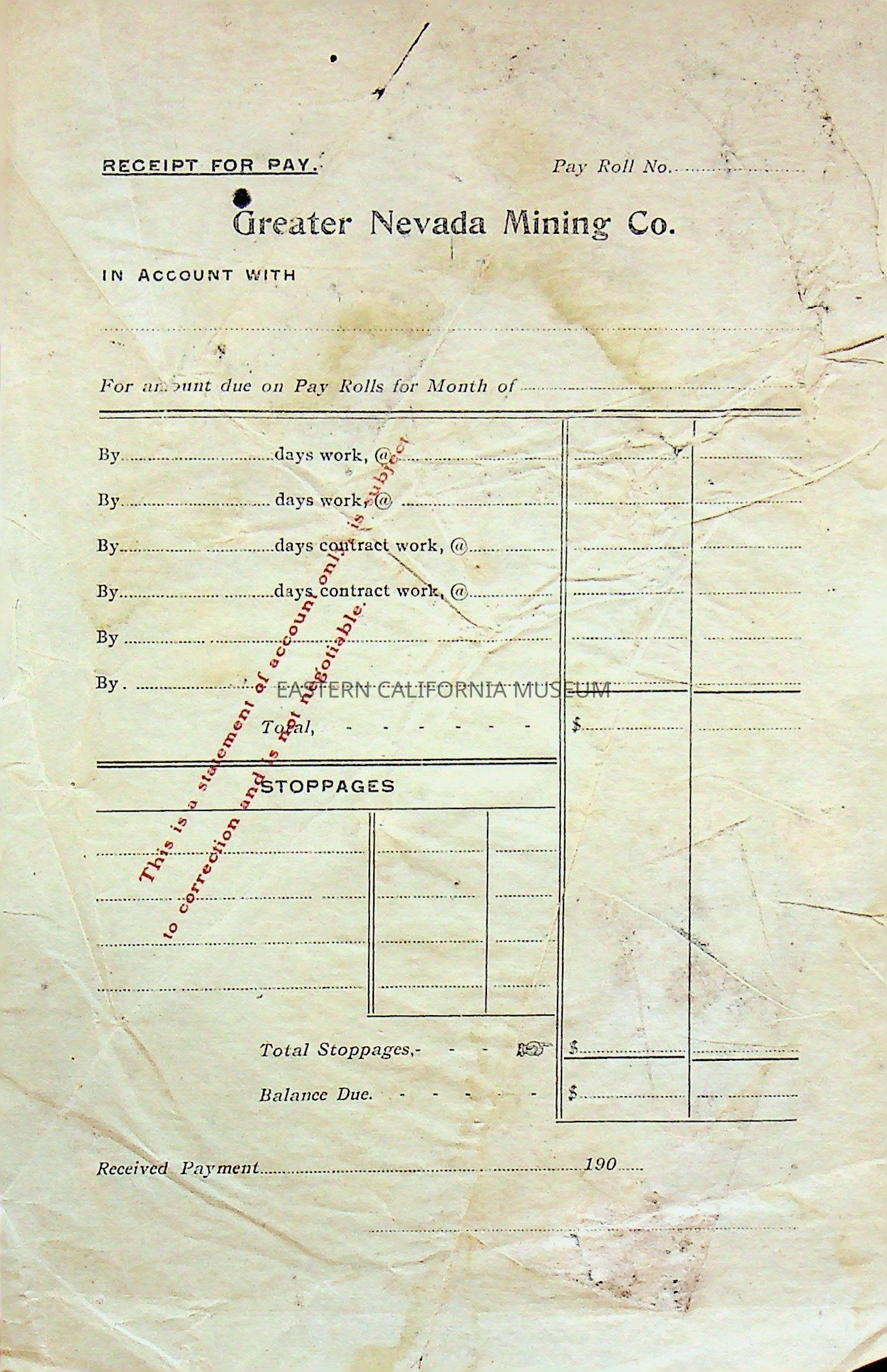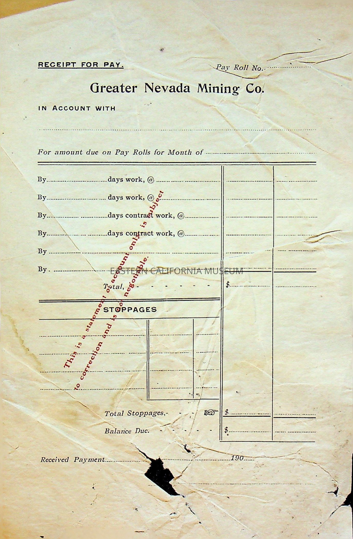 15a-b. Blank receipt for Pay, Greater Nevada Mining Co.