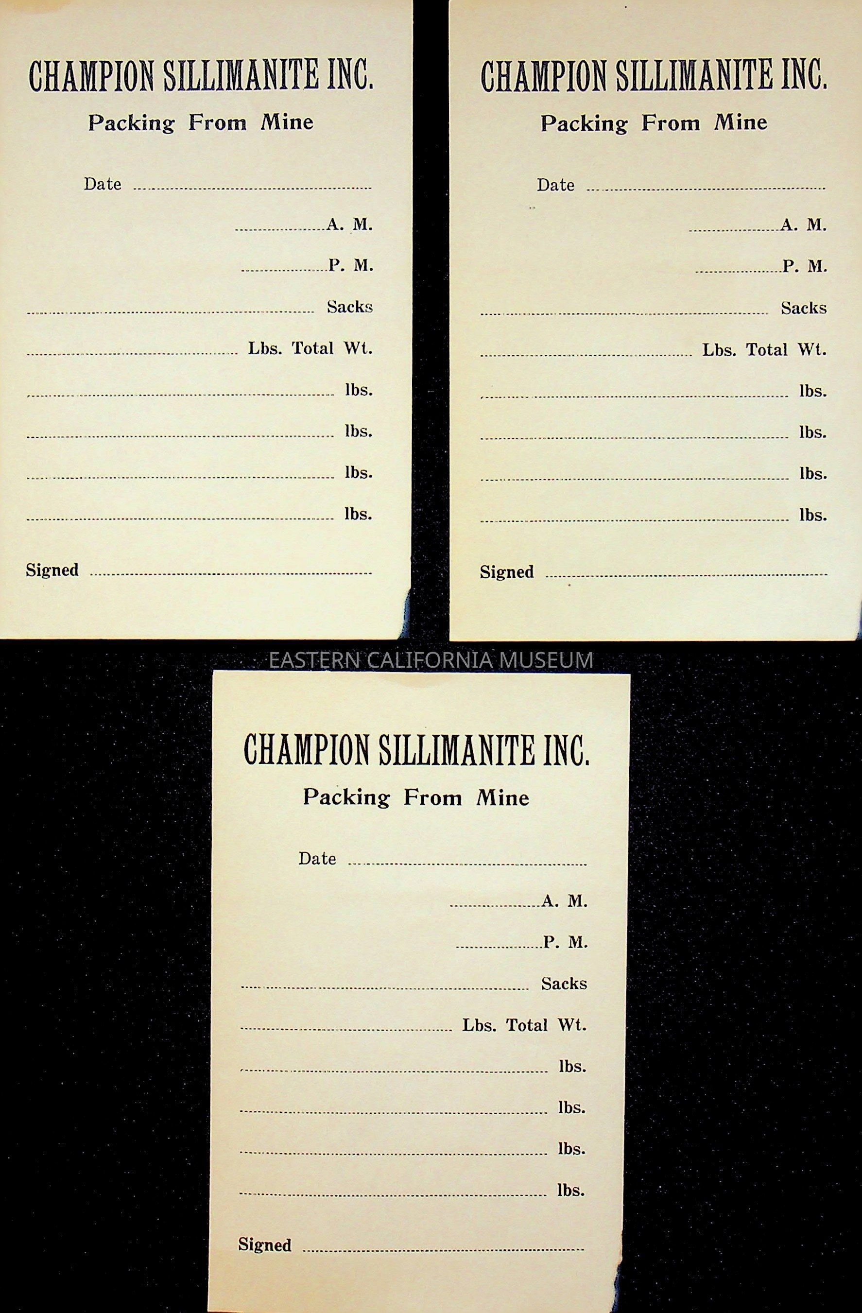 16a-c. Blank receipt, Champion Sillimanite Inc., Packing from Mine.