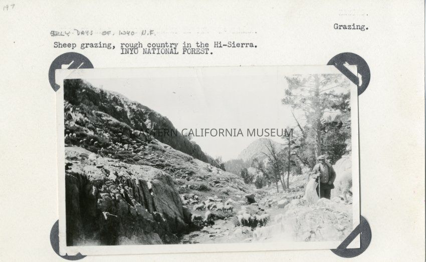 Early Days of Inyo N.F. Sheep grazing, rough country in the Hi-Sierra. INYO NATIONAL FOREST. Grazing.Entry/Object ID