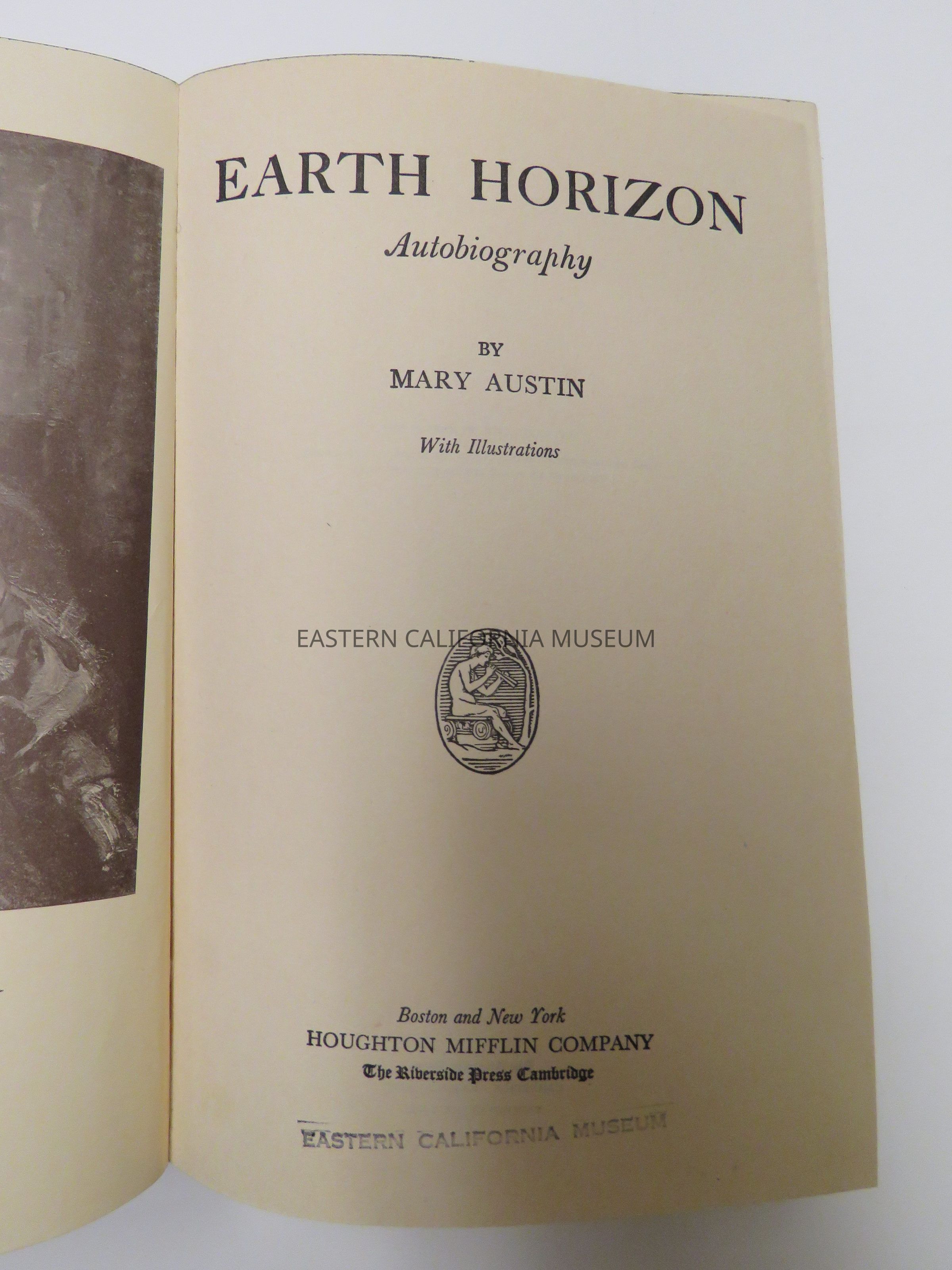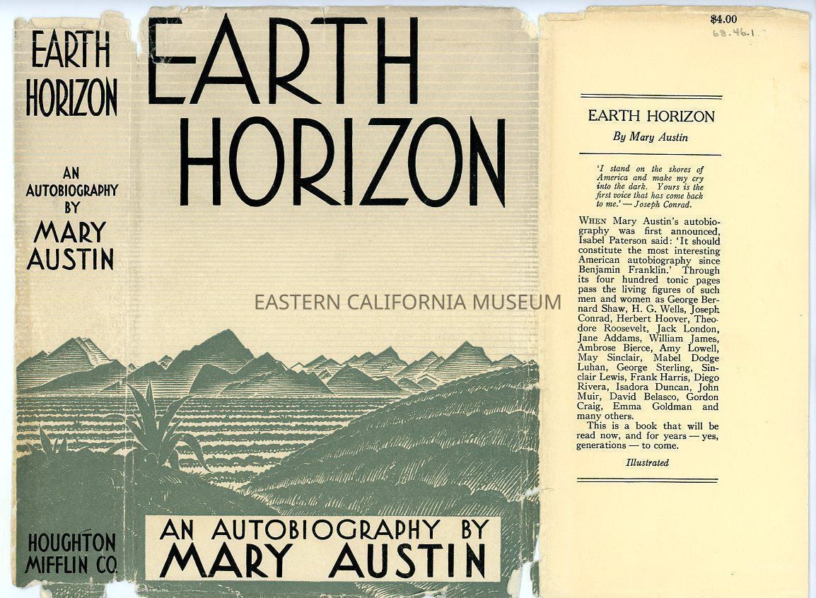 "Earth Horizon" has a partial dust jacket (stored in the accession folder as of 2023).