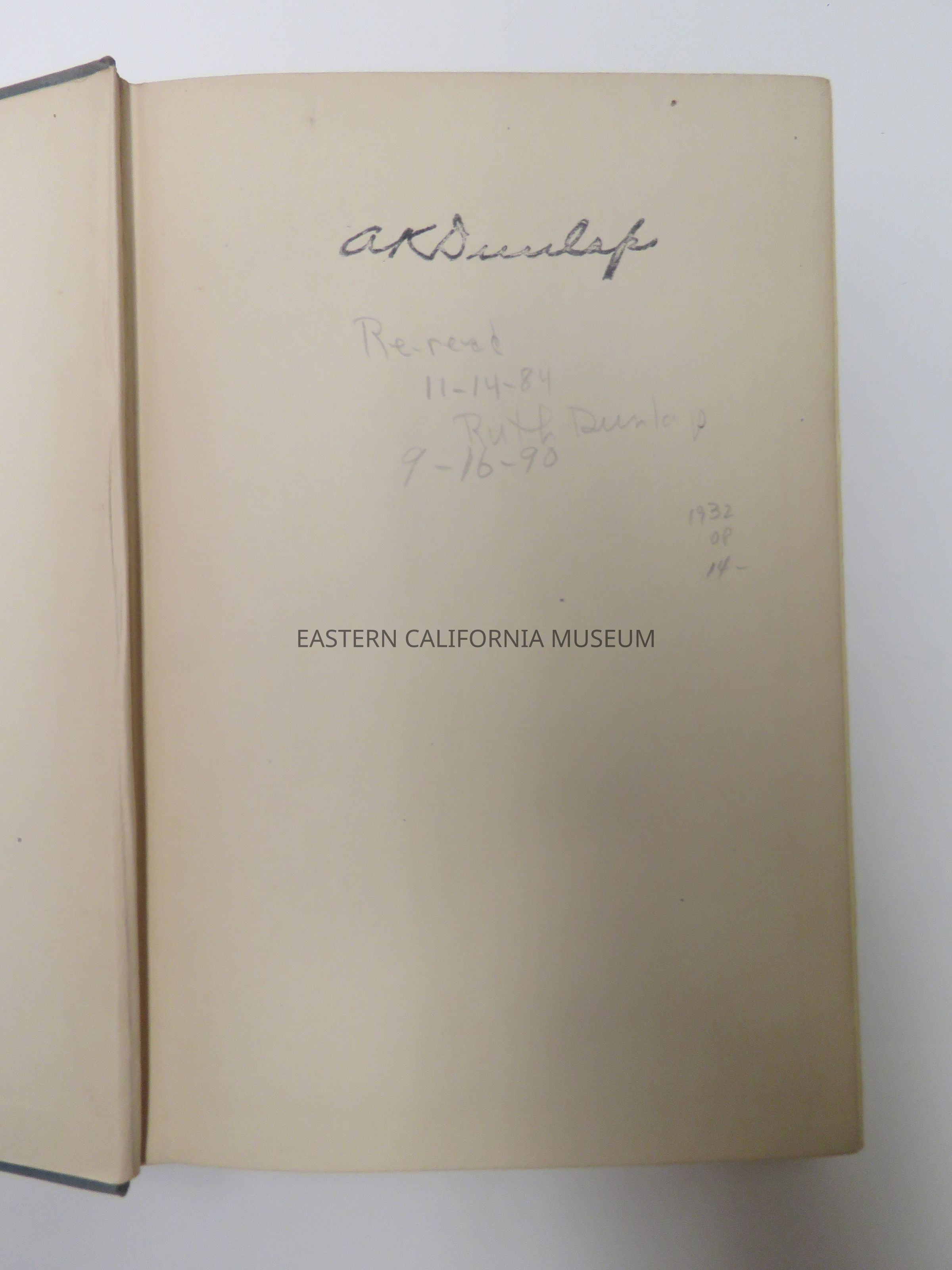 "Earth Horizon" is stamped with "A. K. Dunlap" on front flyleaf and bottom edge.