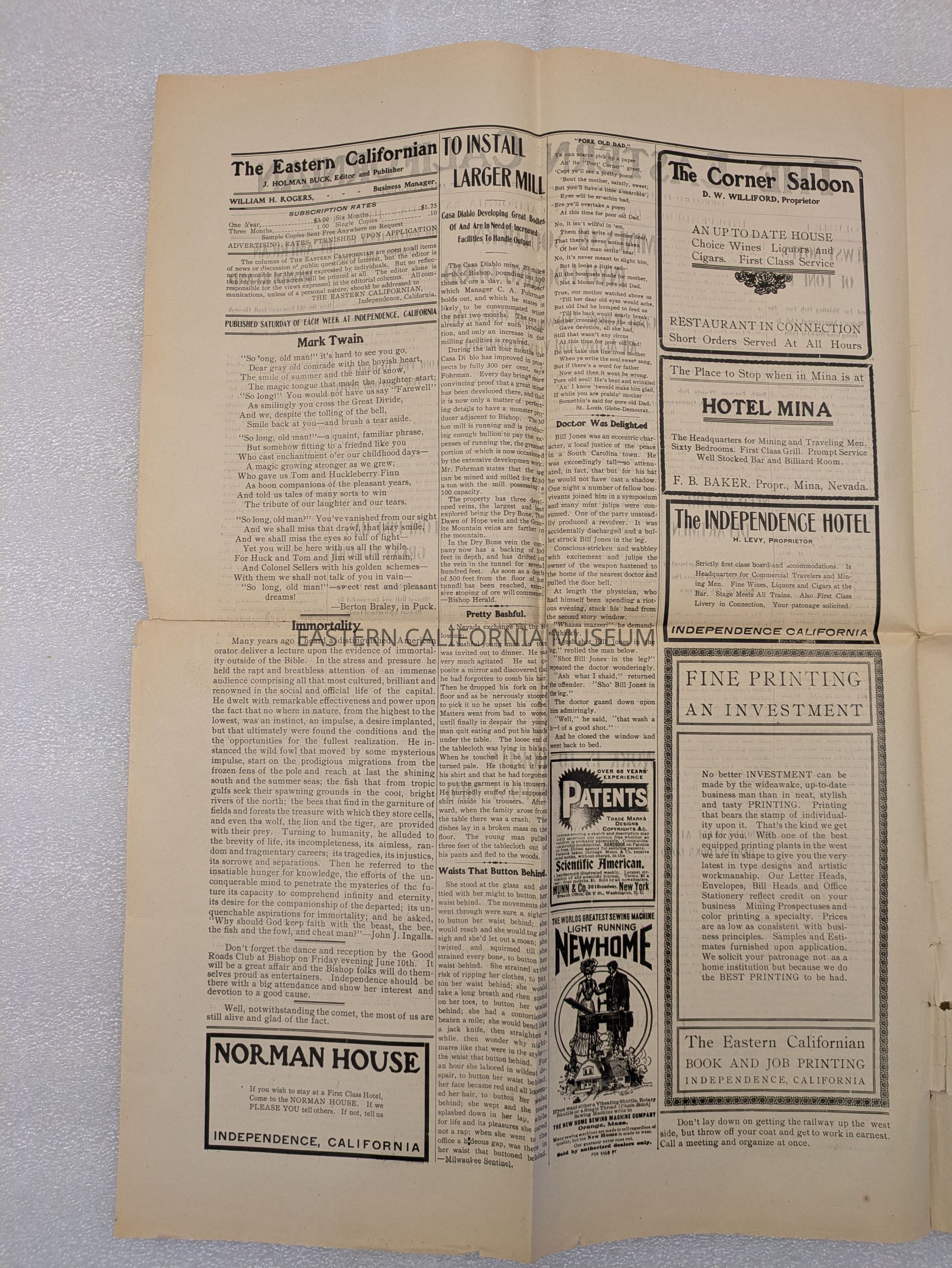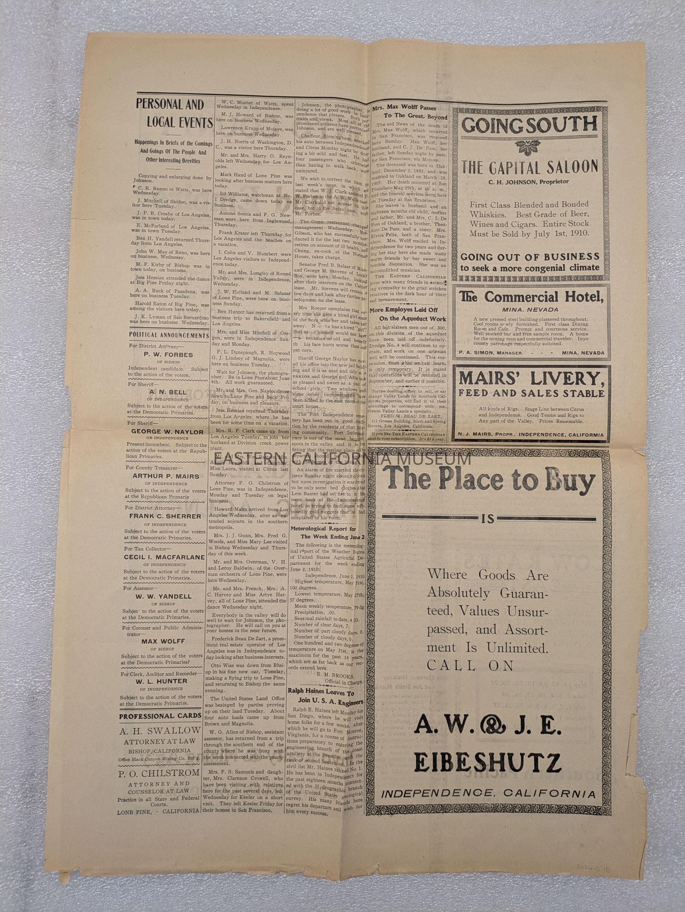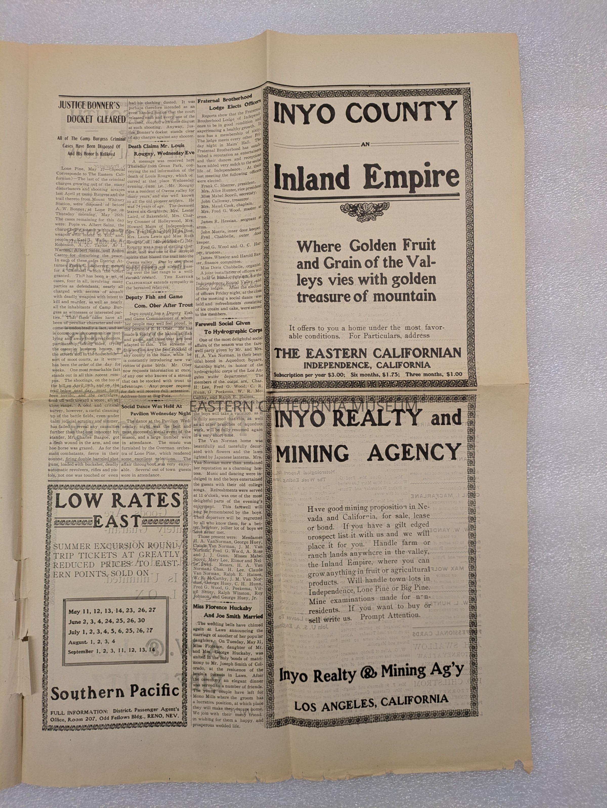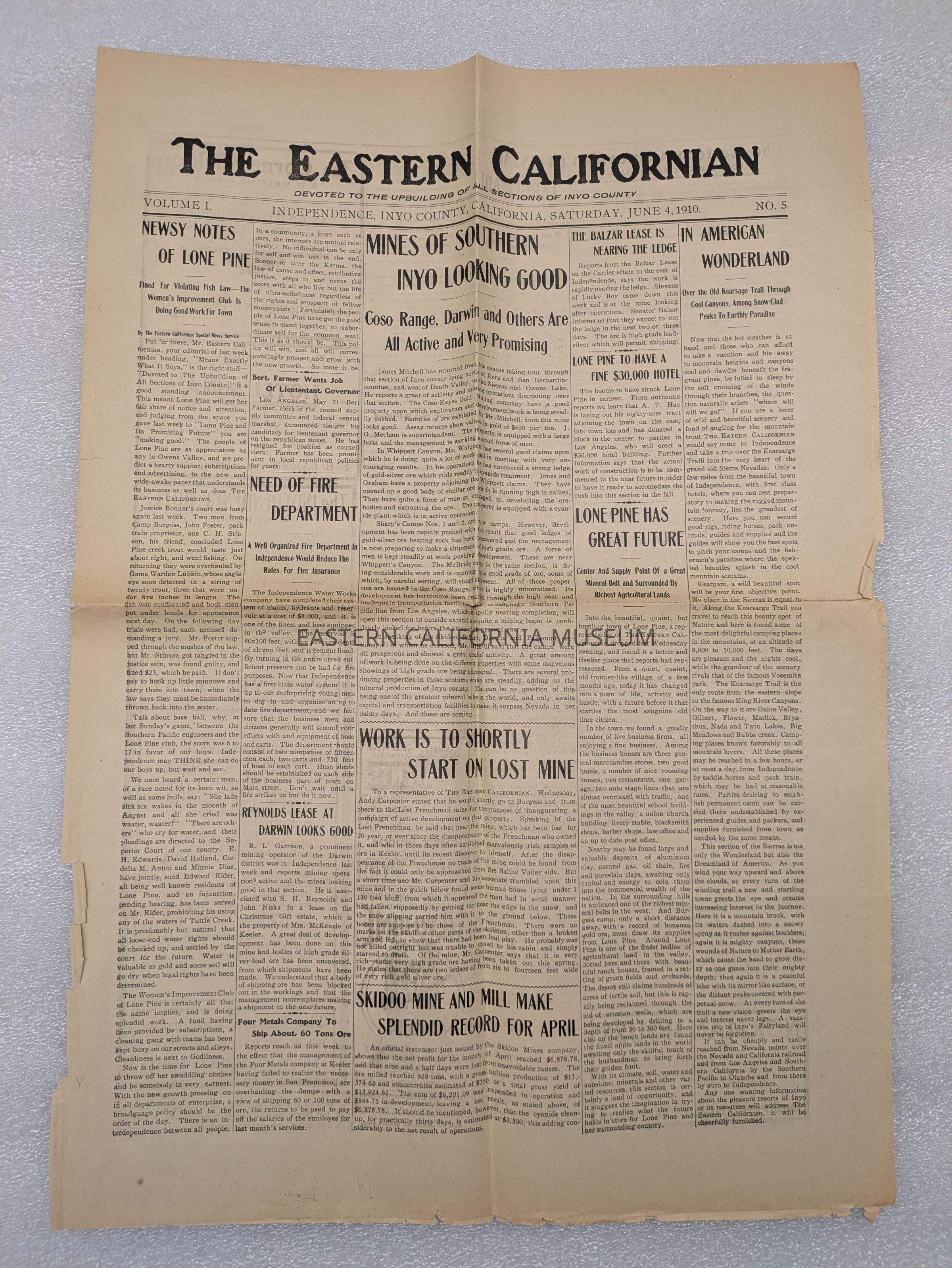 Newspaper: The Eastern Californian, Vol. 1, No. 5, June 4, 1910.