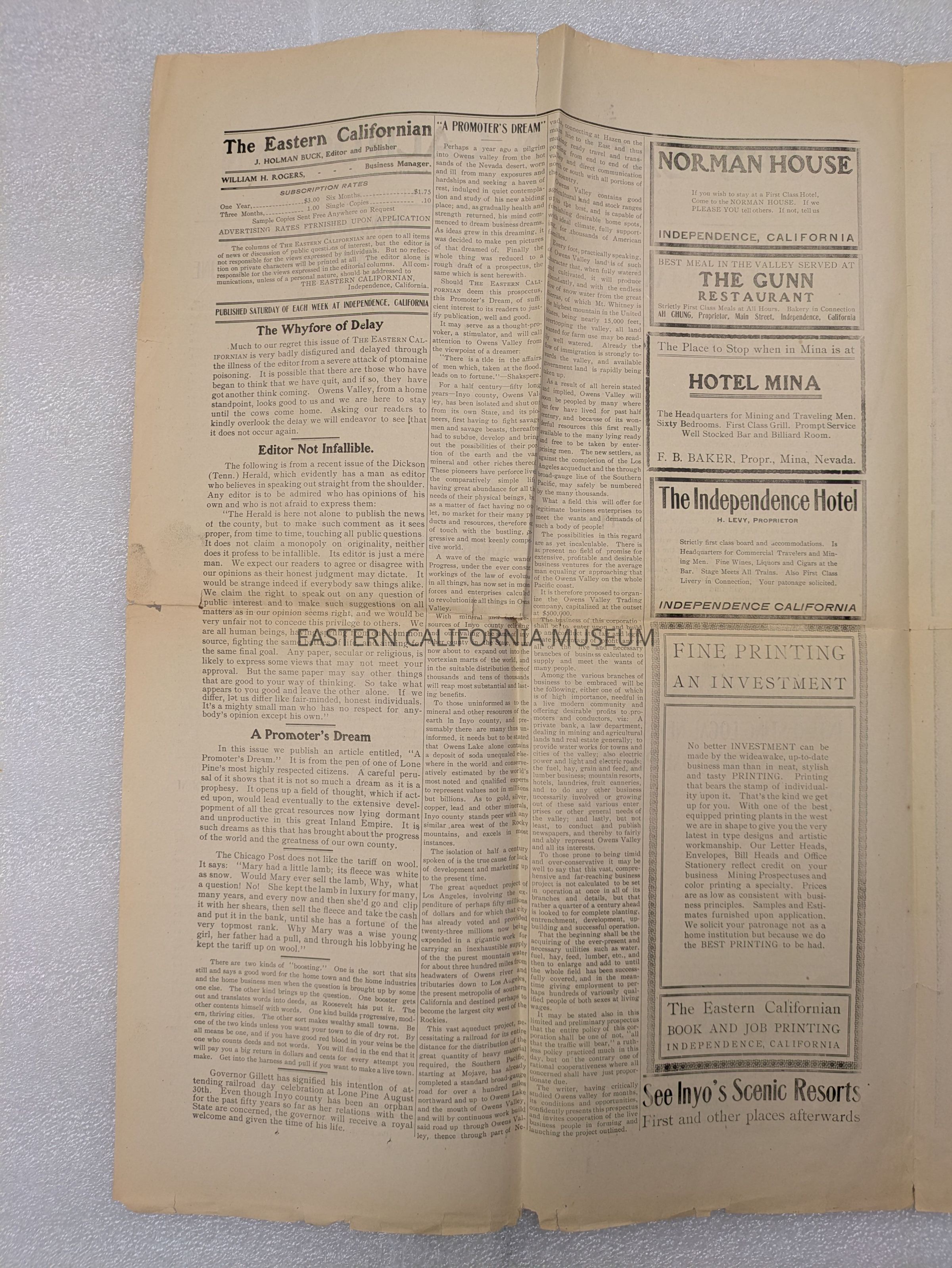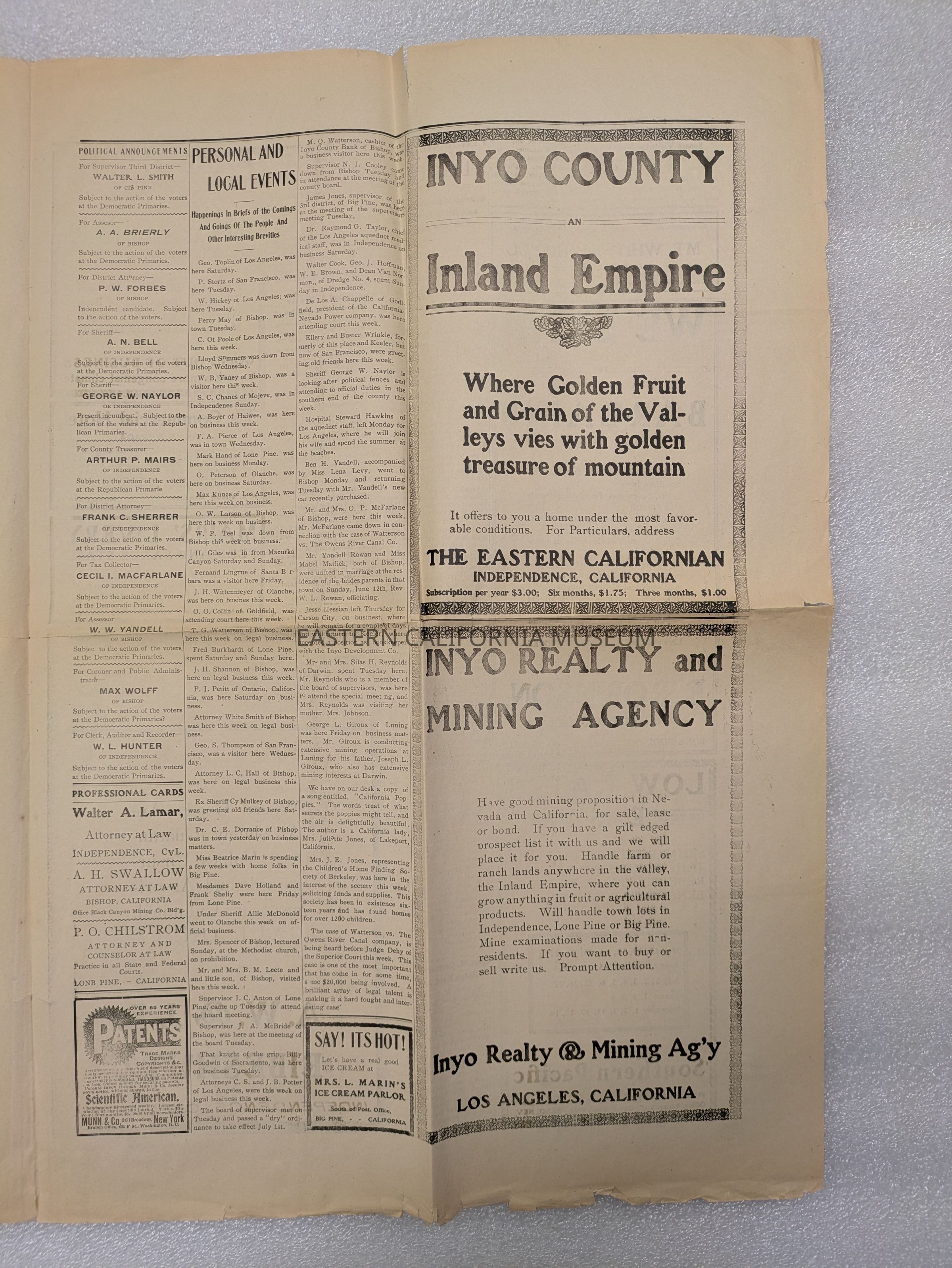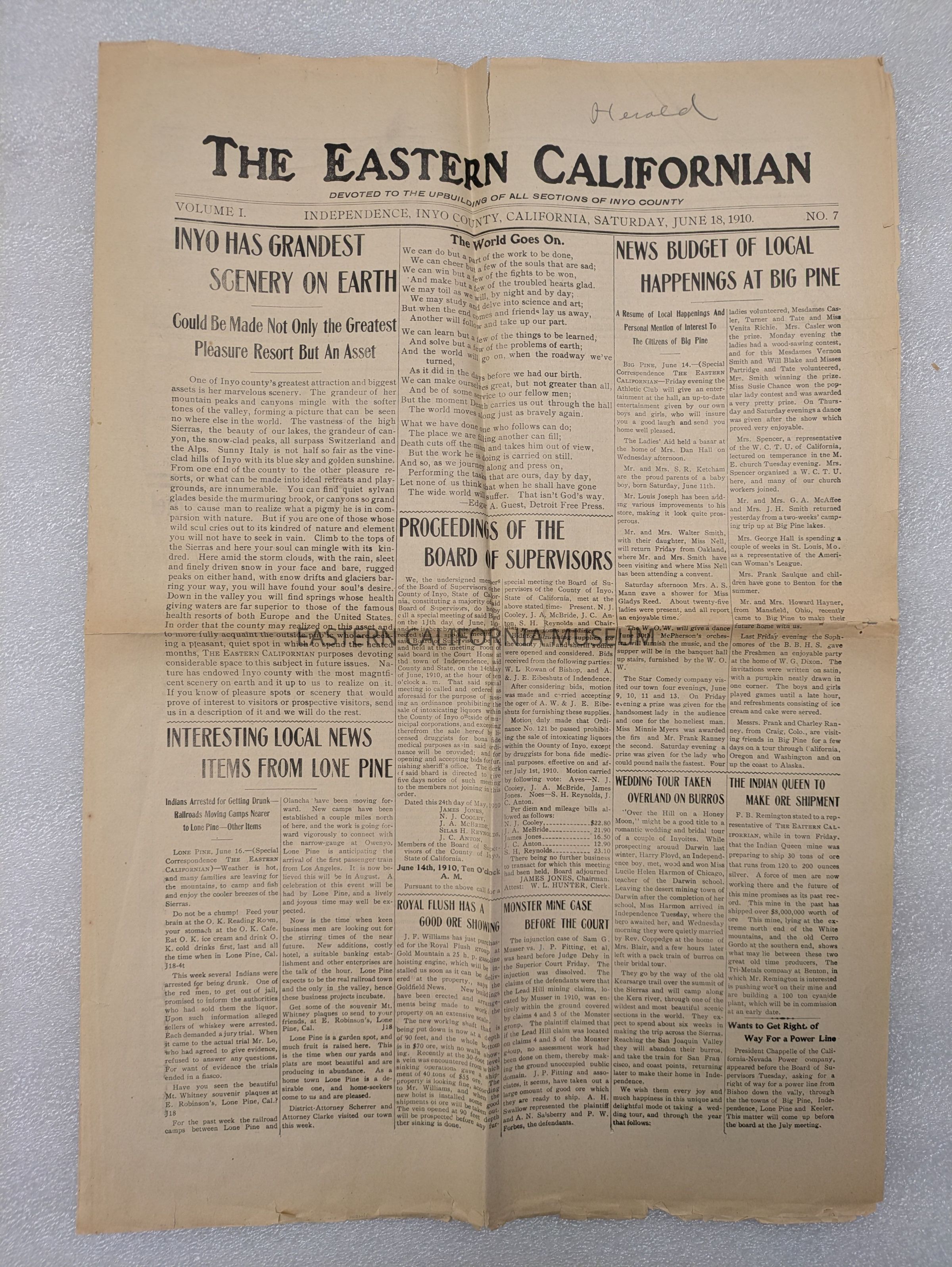 Newspaper: The Eastern Californian, Vol. 1, No. 7, June 18, 1910.