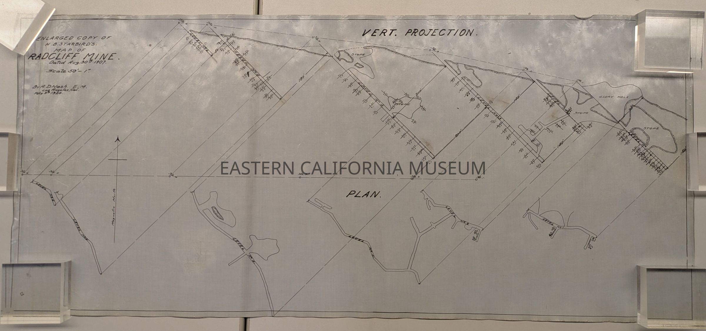 Enlarged Copy of H. B. Starbird's Map of Radcliff [Ratcliff] Mine Dated Aug. 30th, 1907Entry/Object ID
