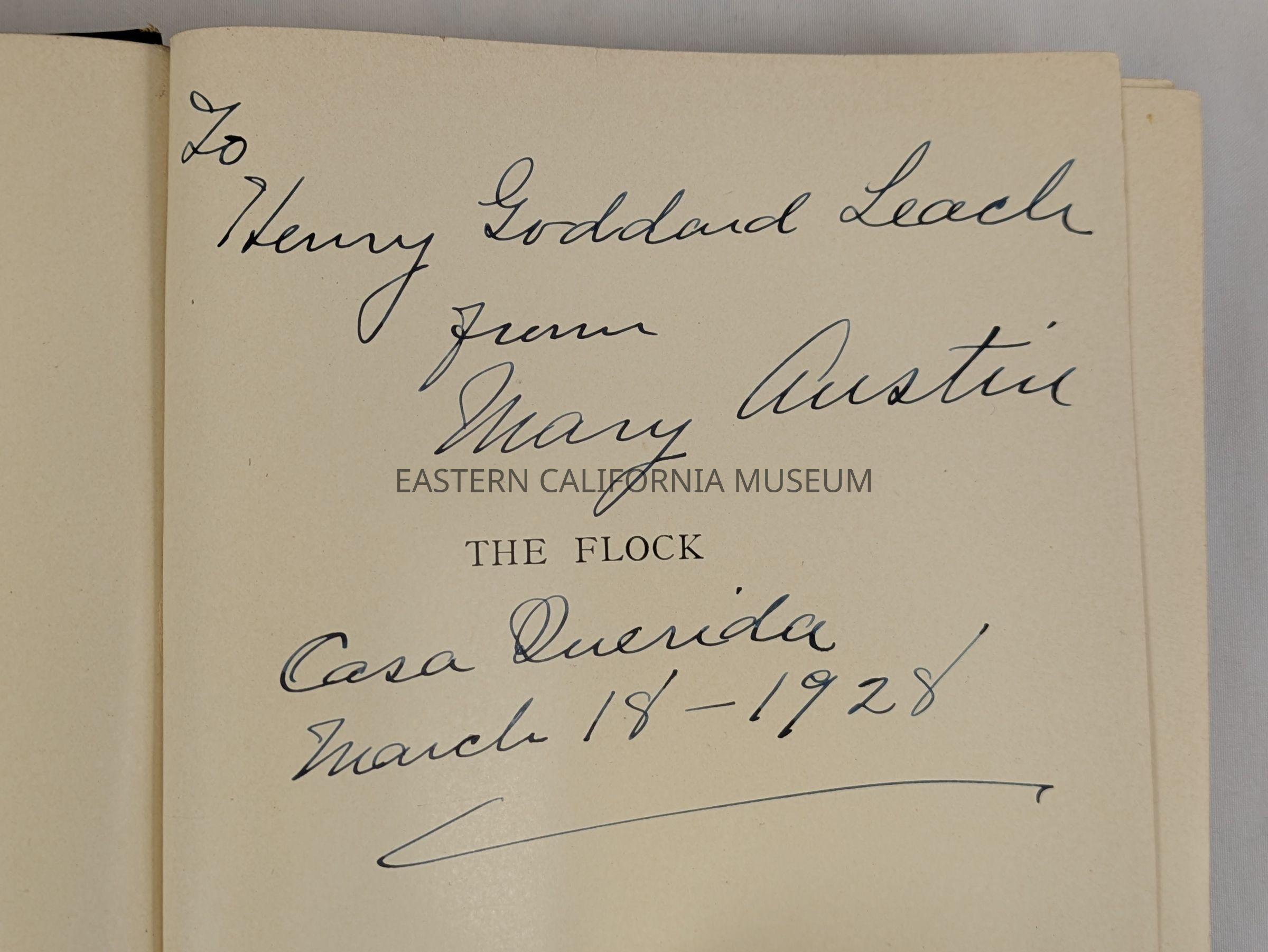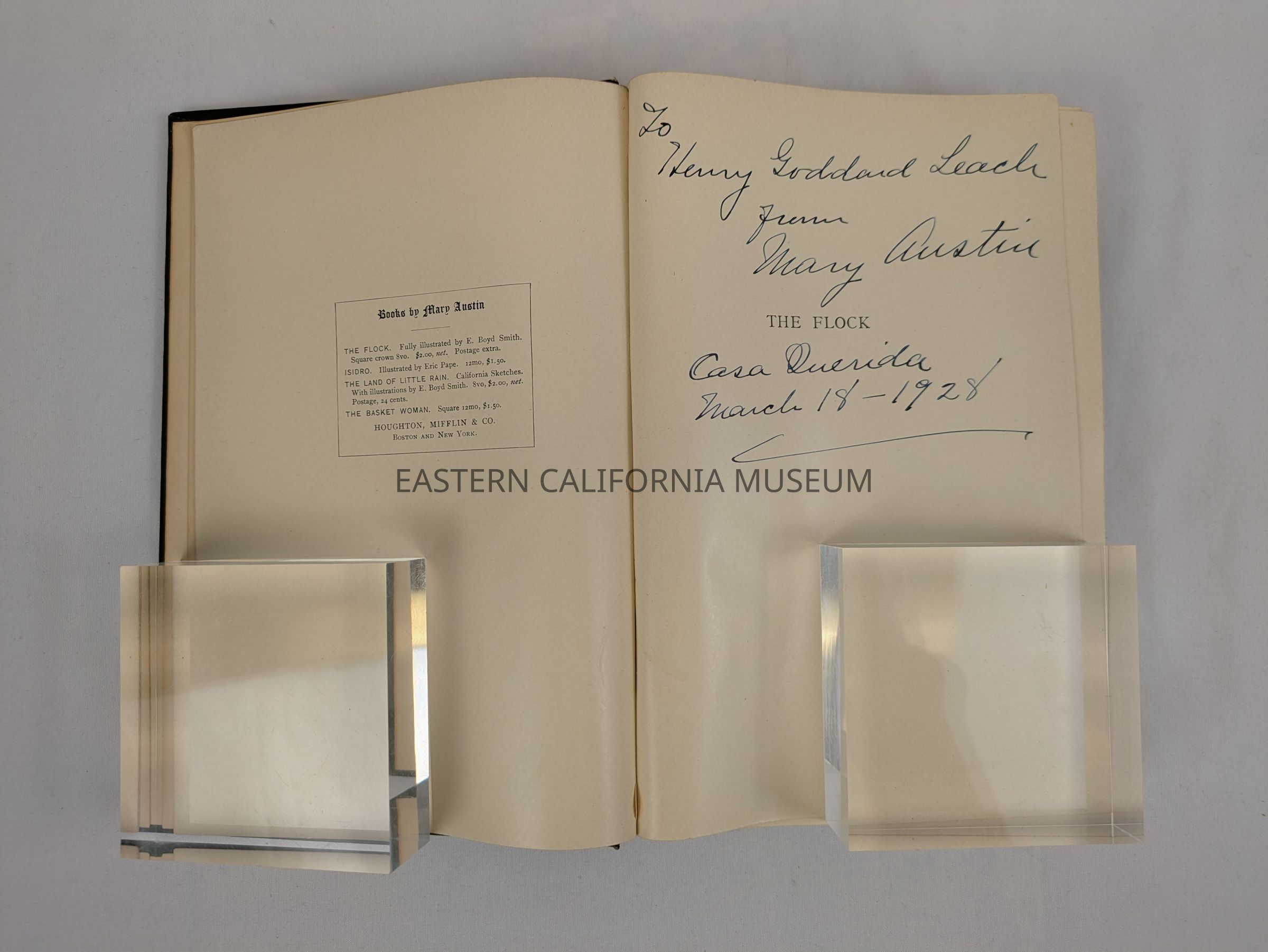 Inscribed to Henry Goddard Leach and autographed at Casa Querida on 03/18/1928. His bookplate is affixed to inside front cover.