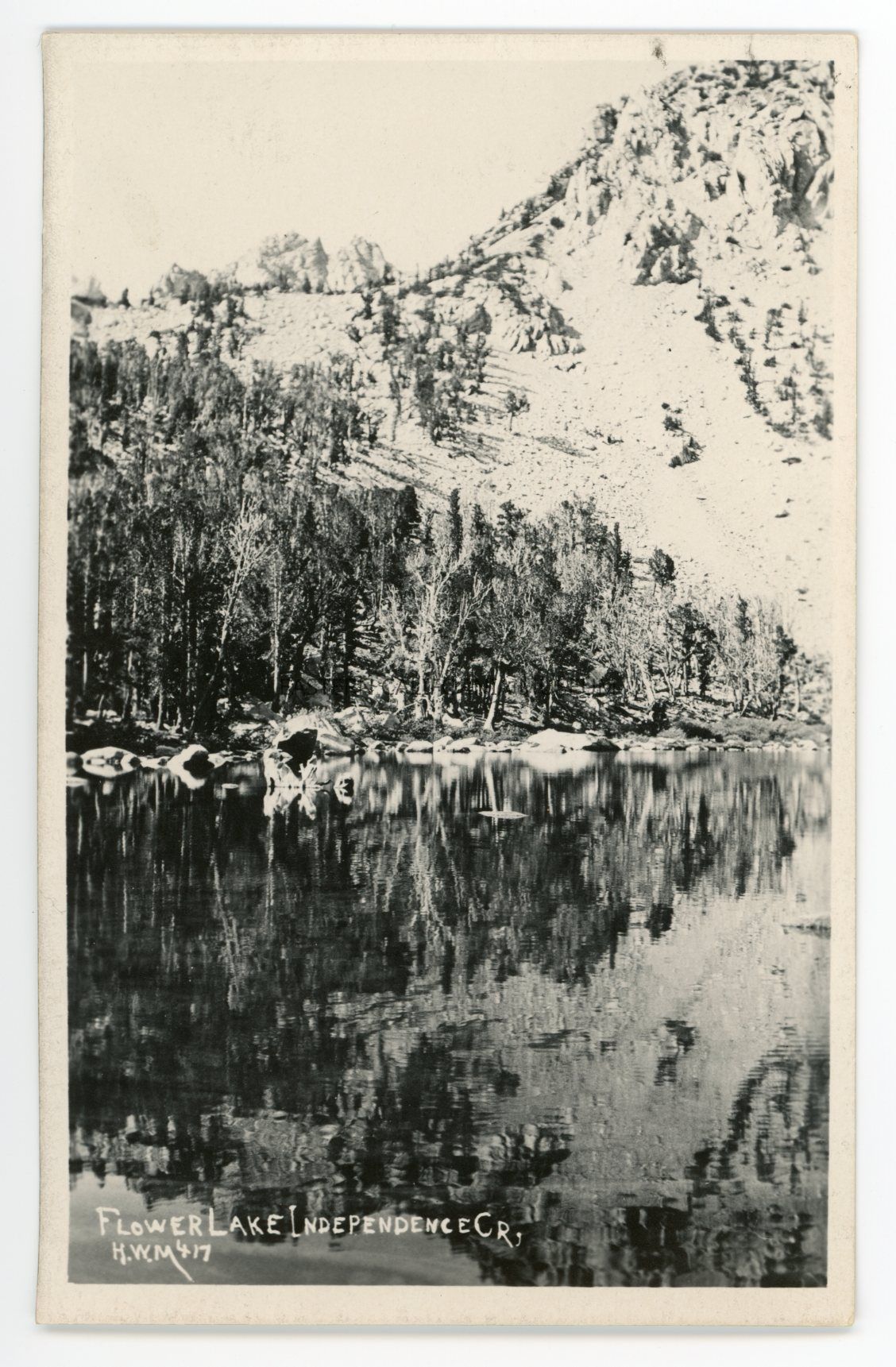 Photo postcard titled, "Flower Lake, Independence Cr. [Creek]" taken by photographer H. W. Mendenhall and given his ID #417.Photograph Details