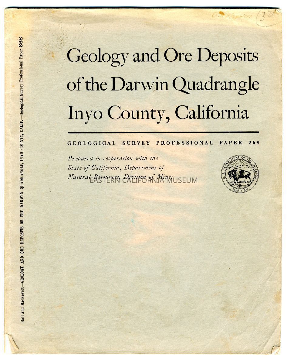 Geological Survey Professional Paper 368: Geology and Ore Deposits of the Darwin Quadrangle, Inyo County, CaliforniaEntry/Object ID