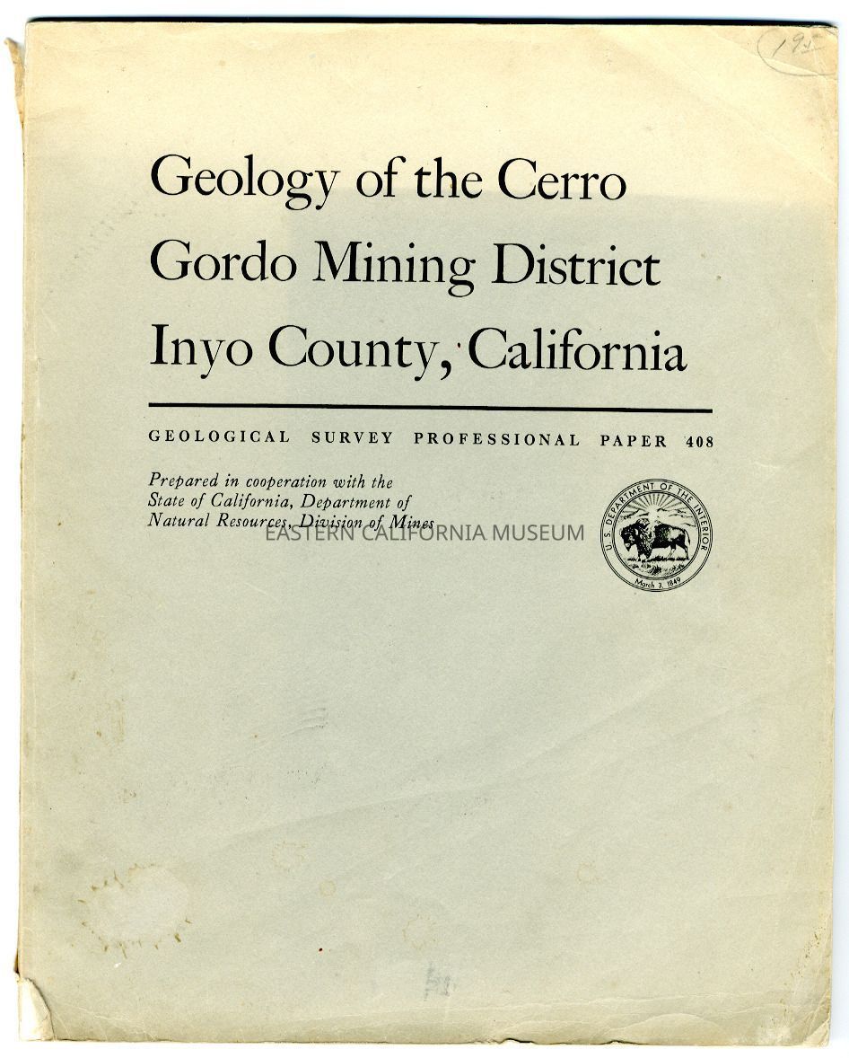 Geological Survey Professional Paper 408: Geology of the Cerro Gordo Mining District, Inyo County, CaliforniaEntry/Object ID