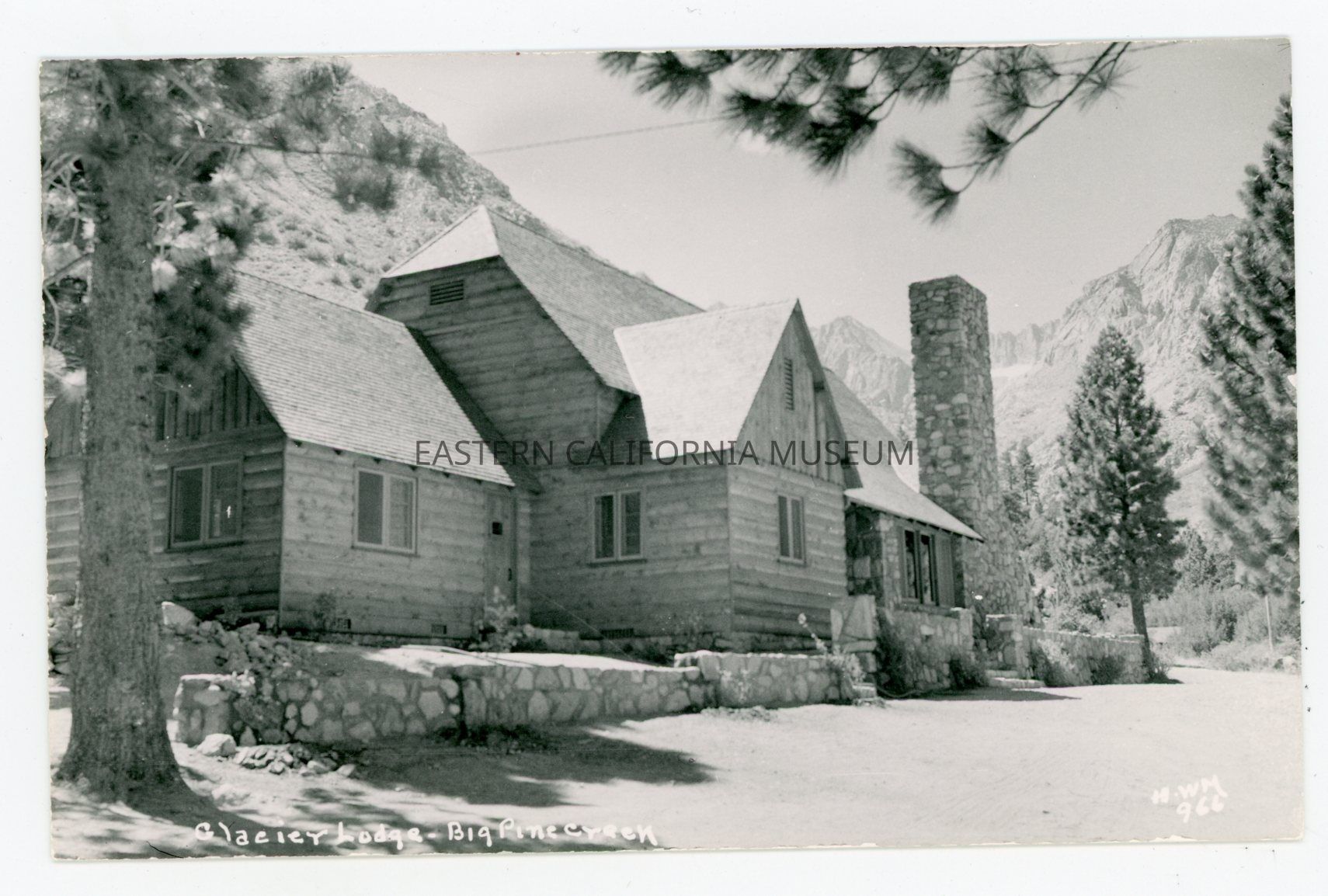 Photo postcard titled, "Glacier Lodge, Big Pine Creek" taken by photographer Harry W. Mendenhall and given his ID #966.Photograph Details