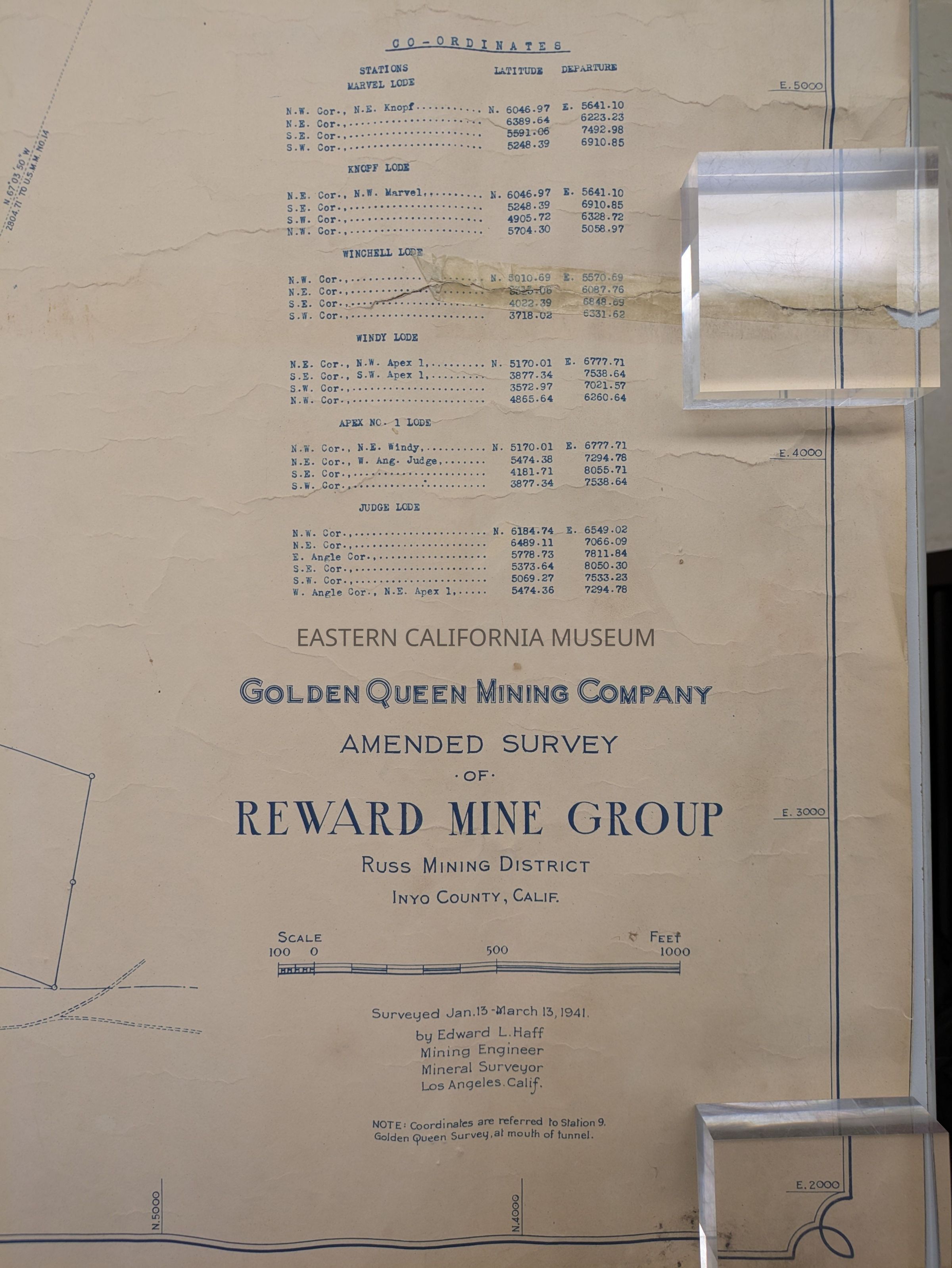 Golden Queen Mining Company Amended Survey of Reward Mine Group, Russ Mining District, Inyo County, Calif.Entry/Object ID