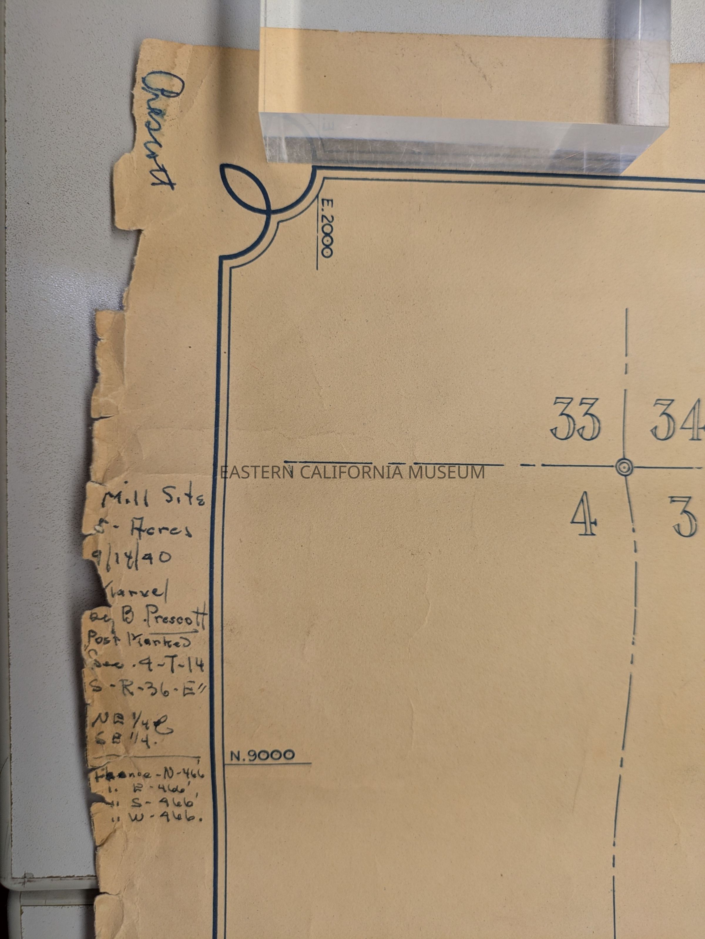 There are a few handwritten notes, mostly along the bottom margin of the map, including “Prescott” and “Mill site.”Collection