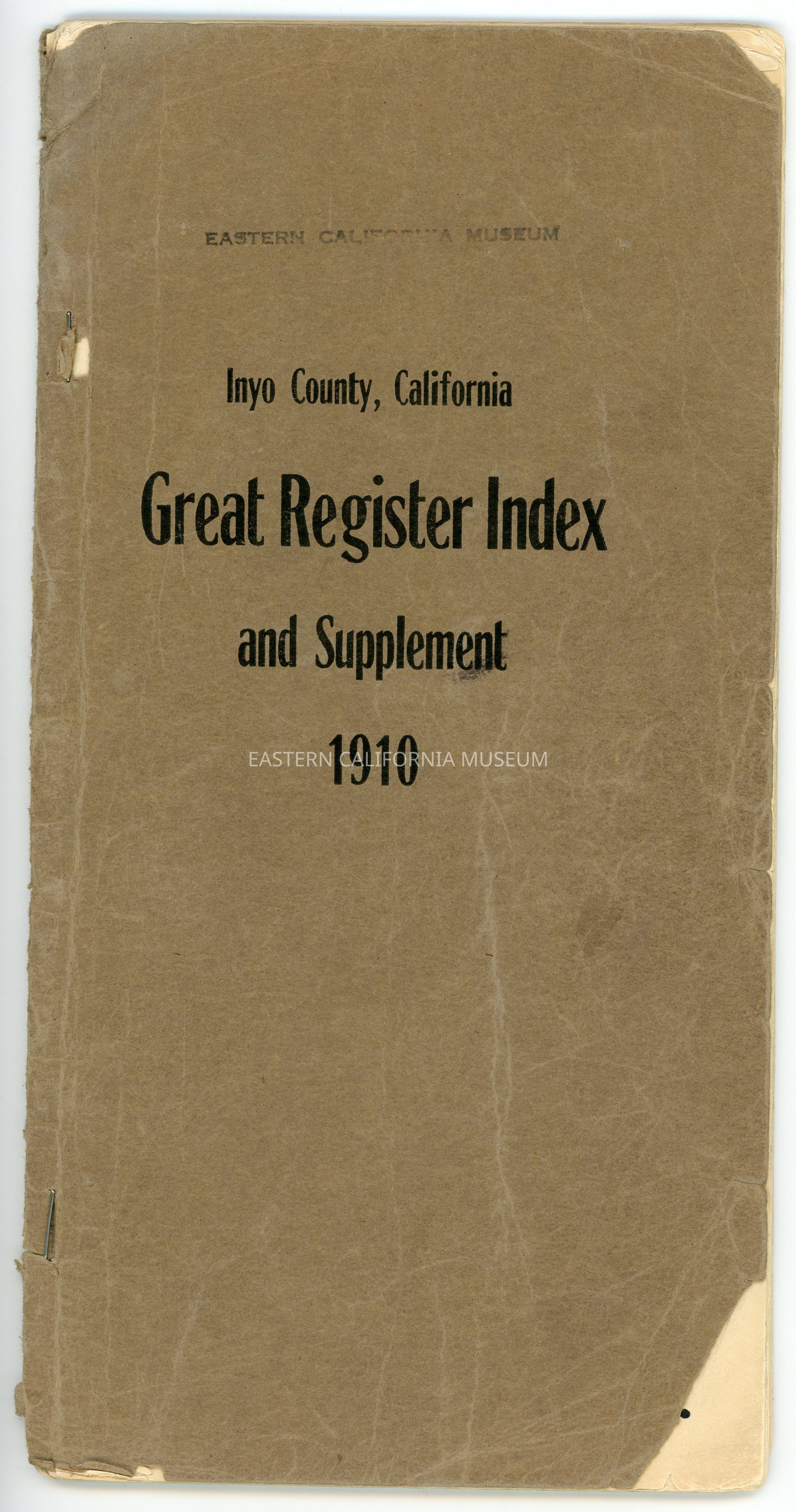 Great Register Index and Supplement, Inyo County, California, 1910.