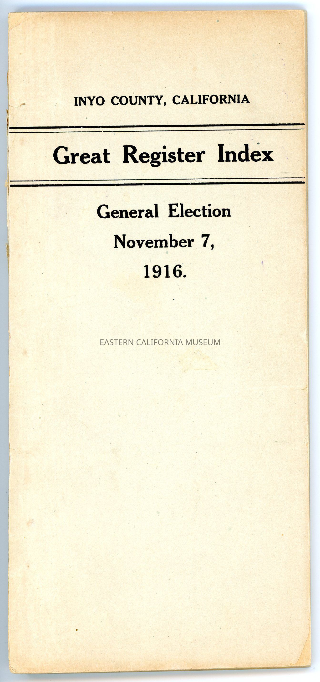 Great Register Index, Inyo County, California, General Election, November 7, 1916