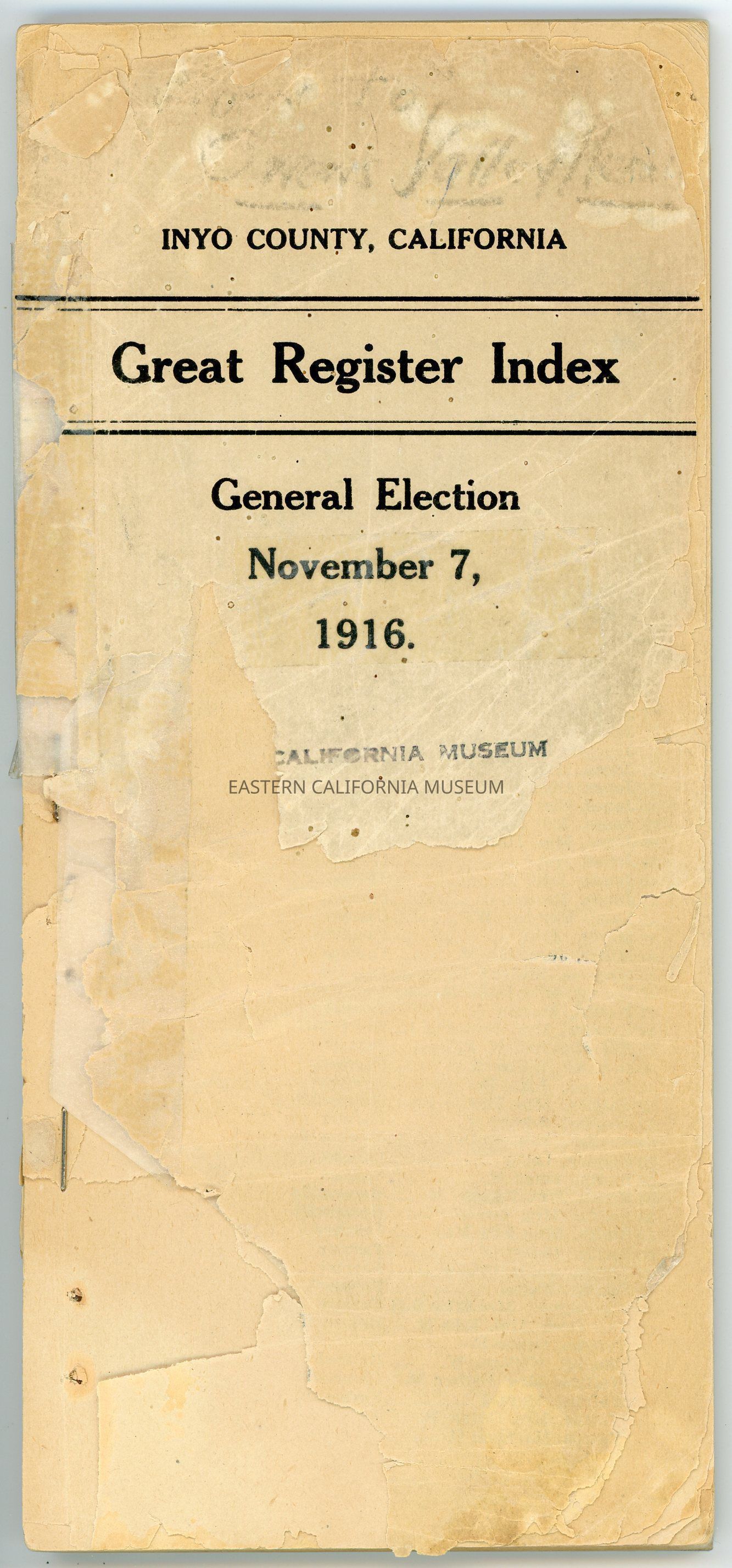 Great Register Index, Inyo County, California, General Election, November 7, 1916