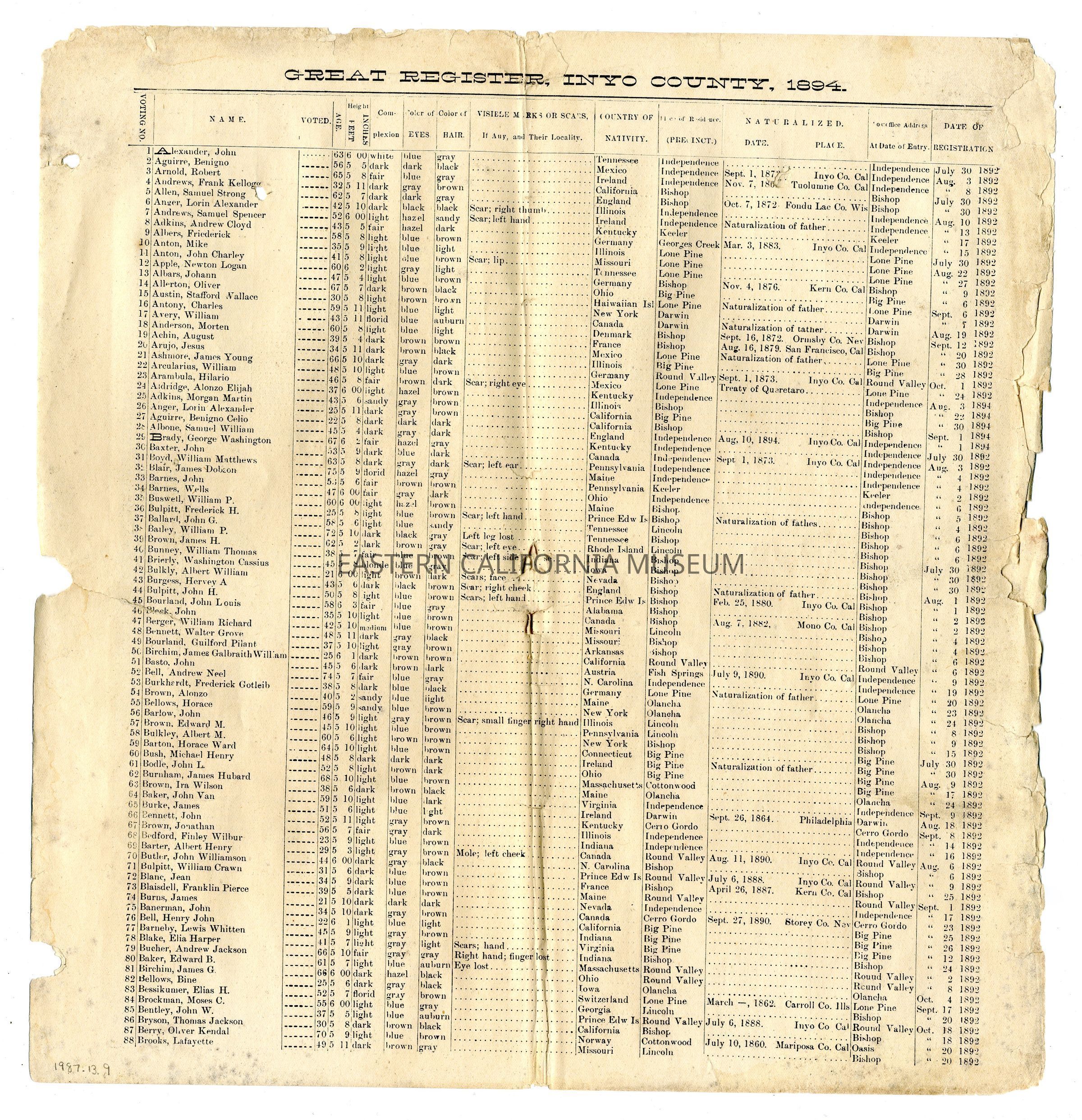 Great Register, Inyo County, 1894